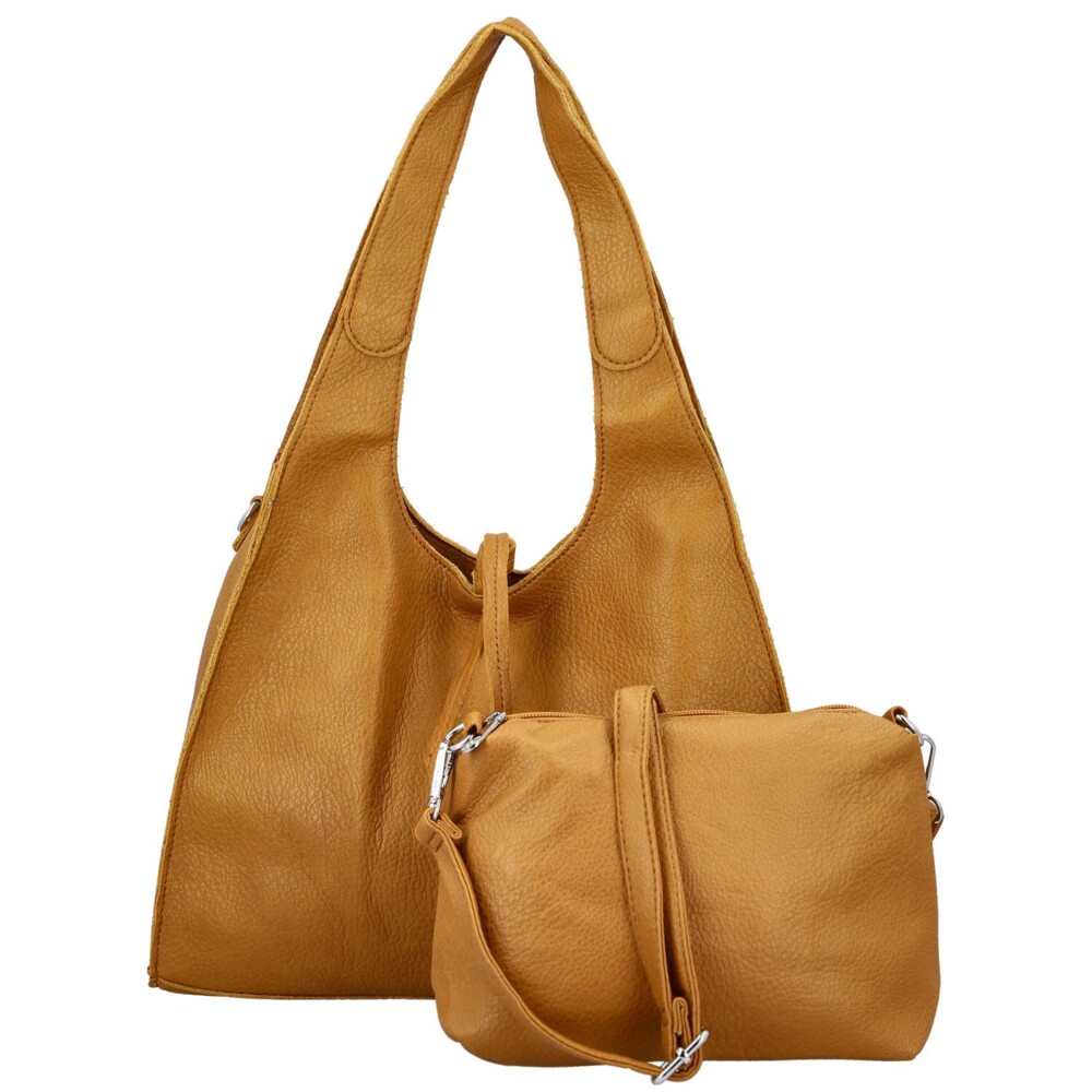 Elegantní set dámských kabelek z koženky nabízí styl i praktičnost v dokonale sladěné dvojici. Větší kabelka s originálním trojúhelníkovým střihem působí moderně a žensky. Má pevná ucha pro pohodlné nošení na rameni a hlavní kapsu na zip, do které se vejde vše potřebné pro váš den. Menší kabelka v setu je skvělým organizérem do větší kabelky, ale díky dlouhému nastavitelnému popruhu ji můžete nosit i samostatně jako crossbody kabelku. Popruh leze odepnout nebo připnout i na větší kabelku, takže s jedním setem získáte hned několik stylů nošení. Celkový dojem podtrhuje jemné stříbrné kování, které dodává luxusní akcent. Praktický a elegantní doplněk, který se přizpůsobí vám i vašemu tempu. Objednejte ještě dnes a vyzkoušejte, vrátit ji můžete až do 30 dnů!