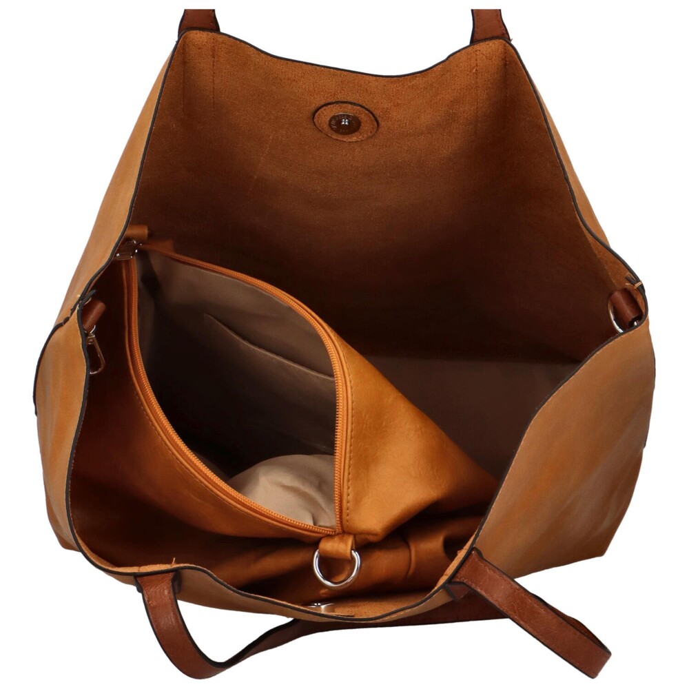 Tři kousky, jeden dokonale sladěný styl. Tento koženkový set je stvořený pro ženy, které chtějí mít přehled, ale zároveň vypadat skvěle. Velká kabelka s dlouhými uchy nabízí dostatek prostoru po celý den a její hlavní kapsa na druk chytře pojme menší crossbody tašku, kterou po odejmutí dlouhého popruhu využijete jako stylový vnitřní organizér. Set doplňuje praktická kapsička na zip, ideální na klíče nebo drobné mince, které nechcete lovit na dně kabelky. Stříbrné kování dodává celku moderní šmrnc a podtrhuje aktuální trendy. Variabilní, lehký a dokonale sladěný set, který se přizpůsobí vašemu dni. Objednejte ještě dnes a vyzkoušejte, vrátit ji můžete až do 30 dnů!