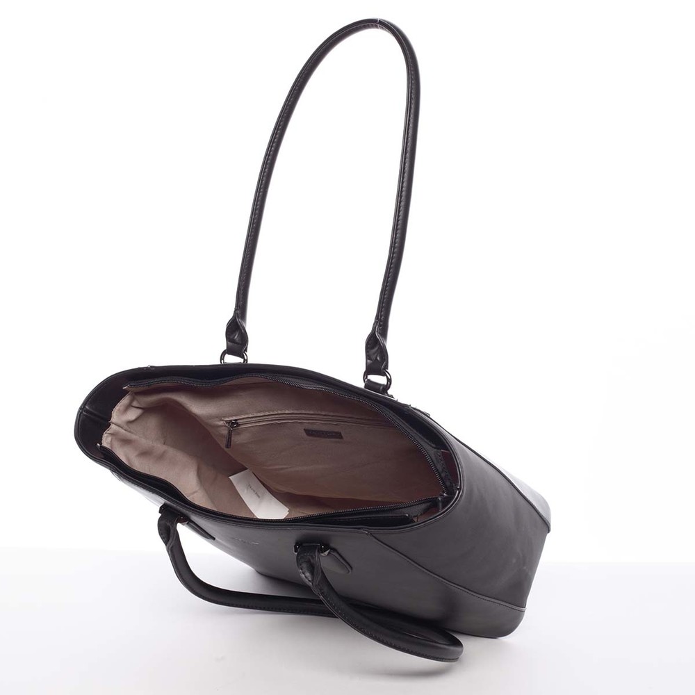 Dalším z hitů na našem e-shopu je černá kabelka Anaya od David Jones. Tato elegantní kabelka potěší všechny sebevědomé a úspěšné ženy. Potvrzuje rčení, že v jednoduchosti je krása. Snoubí se v ní elegance s čistým designem. Při pracovní cestě, cestě za nákupy či do společnosti Vám bude spolehlivým společníkem, který ozdobí a doplní Váš outfit. Kabelka je pevná, prostorná s hlavní kapsou na zip. Má pevné dno opatřené cvočky proti poškrabání. Do hlavní kapsy jsou všity další kapsičky na drobnosti. Velké ucha umožňují kabelku nosit jak v ruce, tak přes rameno nebo na předloktí. Potěší Vás zajisté i praktická kapsa na zadní straně kabelky. Objednejte ještě dnes a vyzkoušejte, vrátit ji můžete až za 30 dnů!