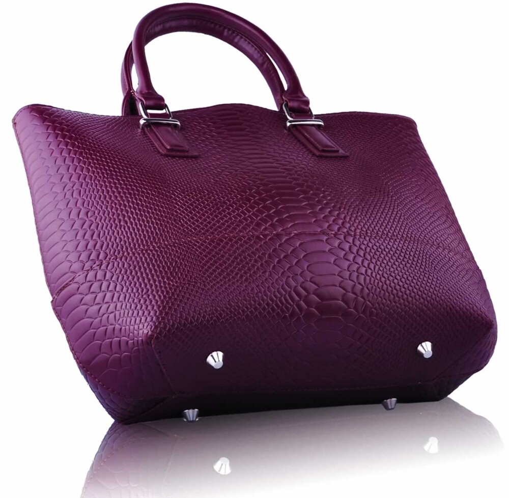 Tote kabelka L&S fashion, lesklá, vzor hadí kůže, na zip. Uvnitř - kapsičky na zip a bez zipu.