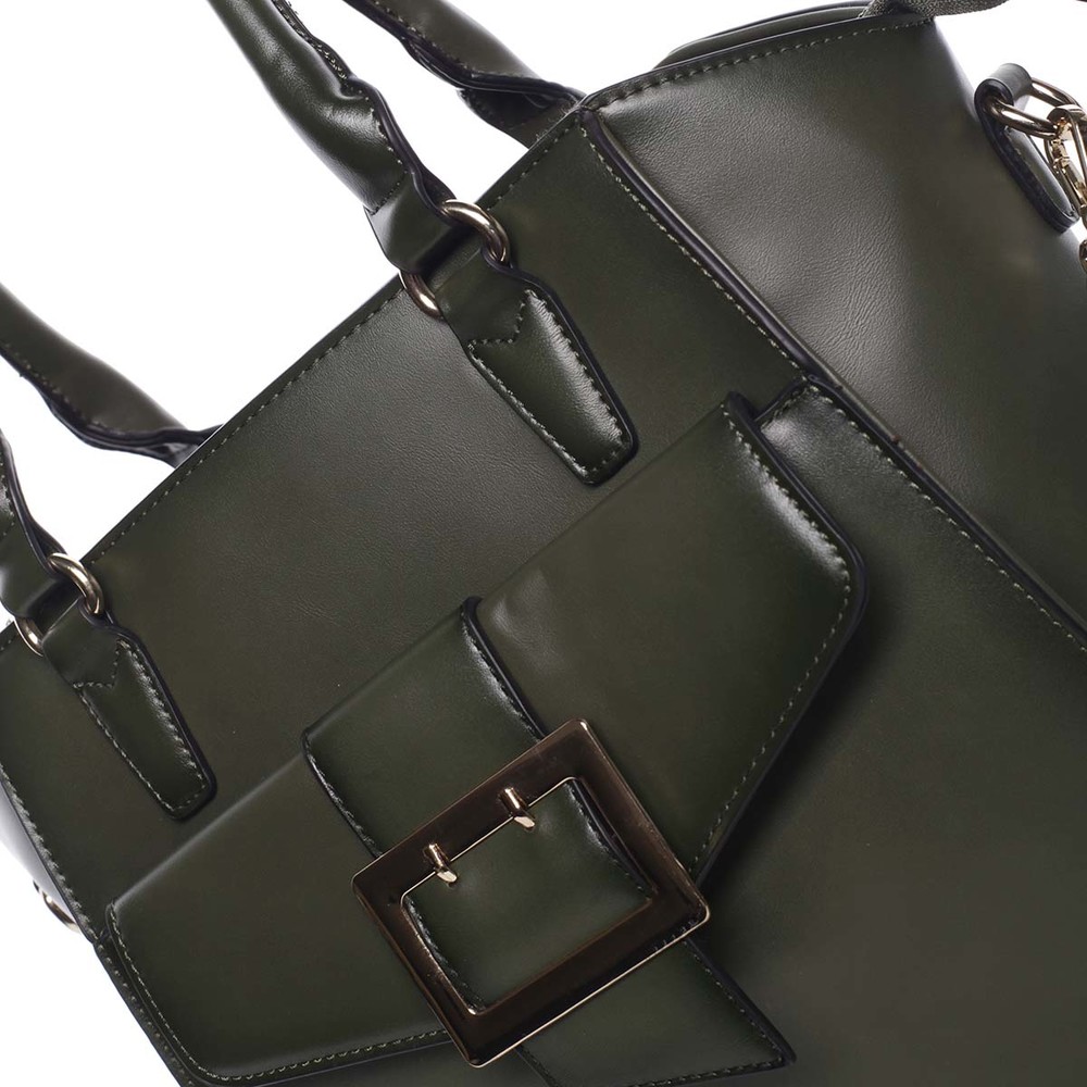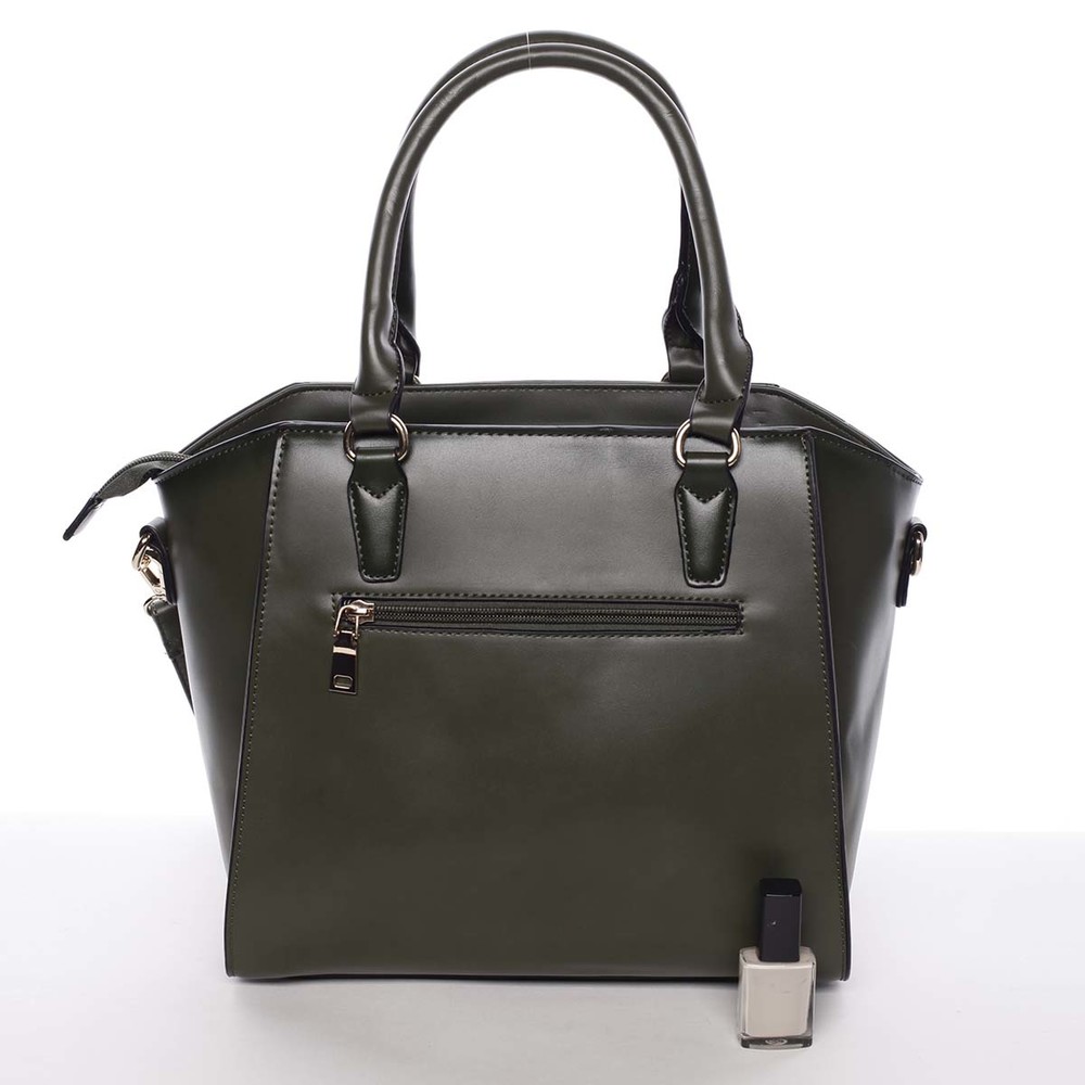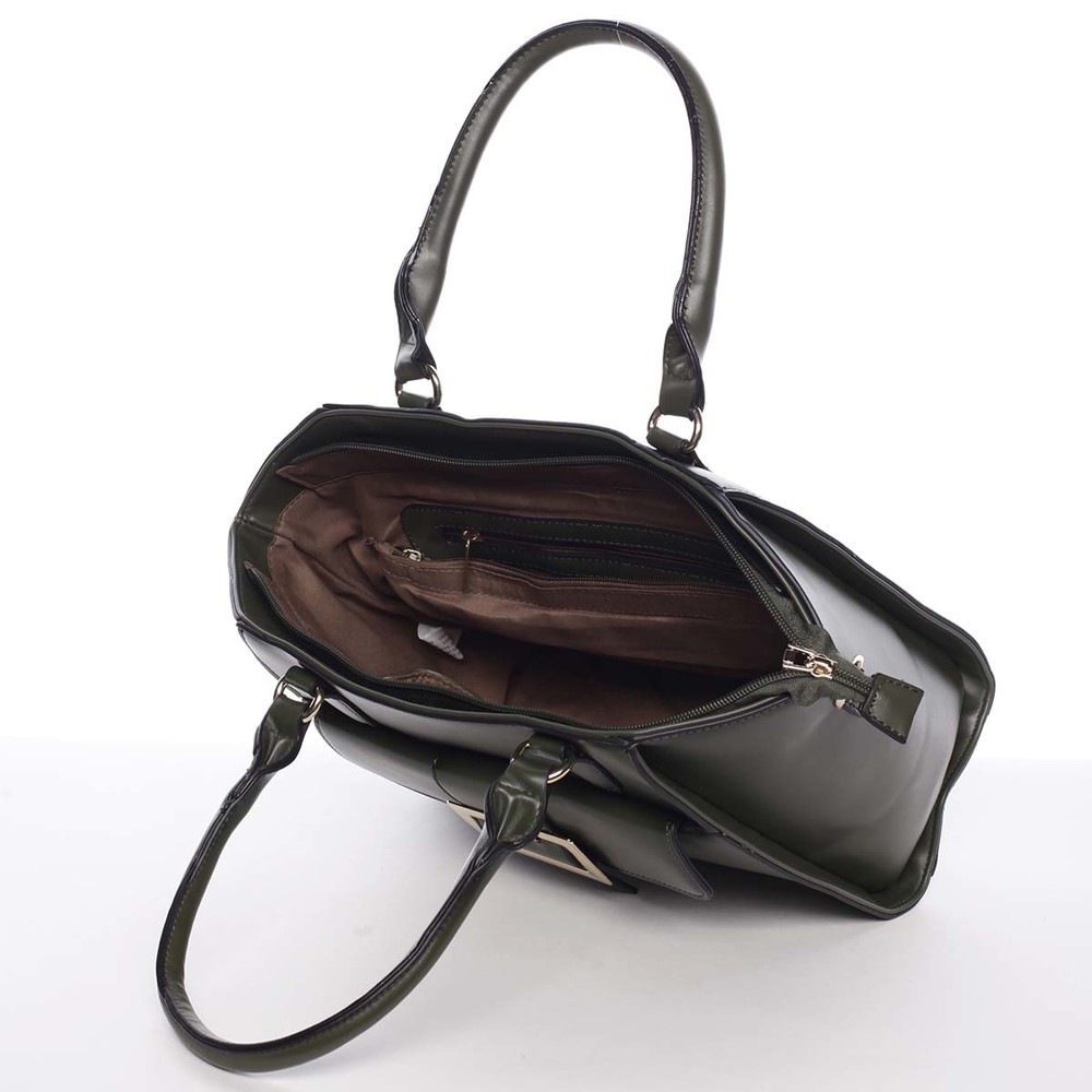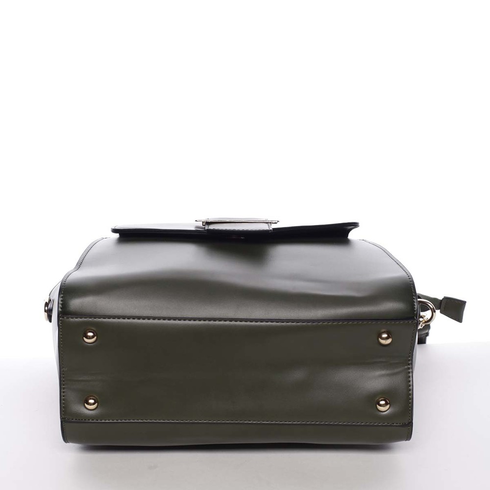 Velice oblíbenou novinkou značky MARIA C. je tato luxusní pevnější tmavě zelená kabelka. Skvělou volbou k outfitu se stává v případě vynesení se do společnosti nebo do města. Střední velikost zaručuje akurátní prostor pro osobní věci a design ohromí jak Vás, tak i společnost kolem. Objednejte ještě dnes a vyzkoušejte, vrátit ji můžete až za 30 dnů! Detail, na který padnou Vaše oči jako první je zlatá spona na přední kapse, zapíná se ovšem skrytým magnetickým cvočkem. Kabelka disponuje bočními úchyty pro nastavitelný popruh a sponami na spodní části, které kabelku chrání před odřením a ušpiněním. Hlavní kapsa na zip Vám nabídne klasické kapsičky na telefon, drobnosti a cennosti. Nechybí zde kapsa se zipem na zadní straně kabelky.