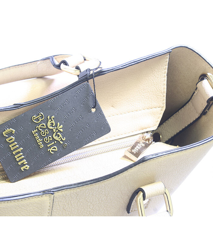 Meruňková originální tote kabelka Bessie London na zip. Uvnitř je odnímatelná kapsa, kterou lze nosit s popruhem zvlášť. Kapsa má uvnitř jednu kapsičku se zipem. Zepředu kapsa na zámeček. Kabelku lze nosit v ruce nebo s přídavným nastavitelným popruhem na rameni. Kovové části jsou ve zlatém provedení. Materiál - technická kůže.
