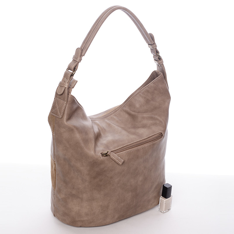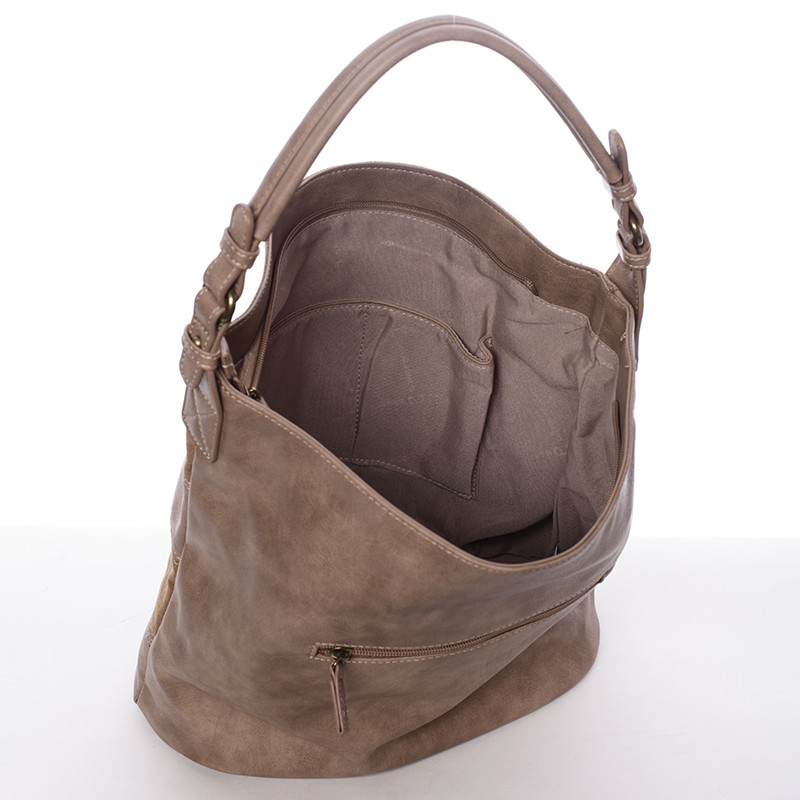 Módní měkká dámská kabelka přes rameno David Jones! Střední hnědá kabelka v kombinaci textilu a umělé kůže Vás překvapí svým neotřelým designem. Poslouží Vám při cestě do školy, do práce, nebo za zábavou. Hlavní kapsa je prostorná s dalšími kapsičkami na drobnosti. Na zadní straně má menší kapsičku na zip. Kabelka má pevné oválné dno a odnímatelný nastavitelný popruh, takže lze nosit i jako crossbody. Objednejte ještě dnes a vyzkoušejte, vrátit ji můžete až za 30 dnů!
