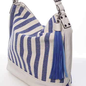 Nabízíme vám elegantní větší prostornou kabelku David Jones z jarně letní kolekce 2016 v modré barvě. Kabelka se vyznačuje jemnou elegancí, velkým prostorem a kvalitním zpracováním. Kombinace textilu a koženky. Uvnitř vám kabelka nabídne příjemný velký prostor, menší kapsy bez zipu a se zipem. Podšívka je květovaná. Kabelku můžete nosit přes rameno nebo v ruce. Novinka léto 2016!