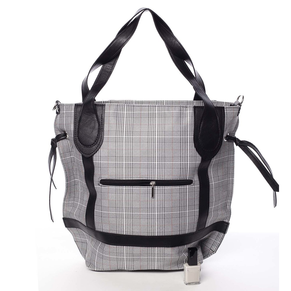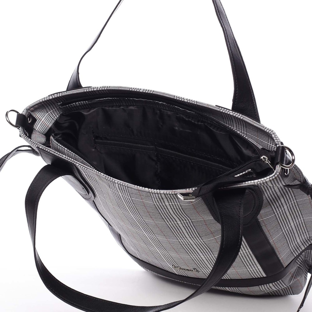 Originální károvaná dámská látková kabelka černá - Delami Saniya