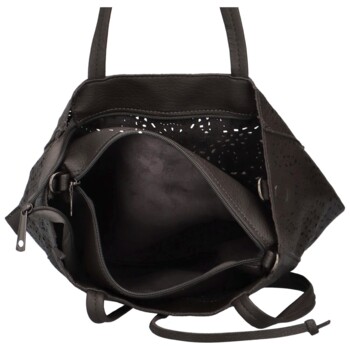 Sada obsahuje větší kabelku s pevnými uchy přes rameno a menší kabelku s nastavitelným popruhem, kterou lze nosit samostatně nebo připnout dovnitř větší kabelky jako kapsičku navíc. Větší kabelka je designově děrovaná a velmi krásná, oživuje ji jemná stahovací šňůrka pro lepší zabezpečení hlavní kapsy. Menší kabelka je měkčí a uvnitř jsou k dispozici přihrádky na Vaše drobnější věci, ke kabelce je přídavný popruh, pro nošení na rameni. Stříbrné kování doladí styl kabelek. Objednejte ještě dnes a vyzkoušejte, vrátit ji můžete až do 30 dnů!