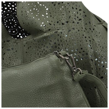 Trendy sada obsahuje větší kabelku s pevnými uchy přes rameno a menší kabelku s nastavitelným popruhem, kterou lze nosit samostatně nebo vložit dovnitř větší kabelky jako kapsičku navíc. Větší kabelka je designově děrovaná a má velmi módní lodičkový střih. Hlavní kapsu zabezpečíte zipem. Menší kabelka je měkčí a uvnitř jsou k dispozici přihrádky na Vaše drobnější věci. Ke kabelce je přídavný popruh s možností regulace délky, pro nošení na rameni či do kříže. Stříbrné kování doplní jemný styl kabelky. Objednejte ještě dnes a vyzkoušejte, vrátit ji můžete až do 30 dnů!