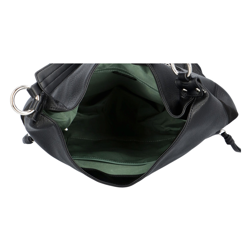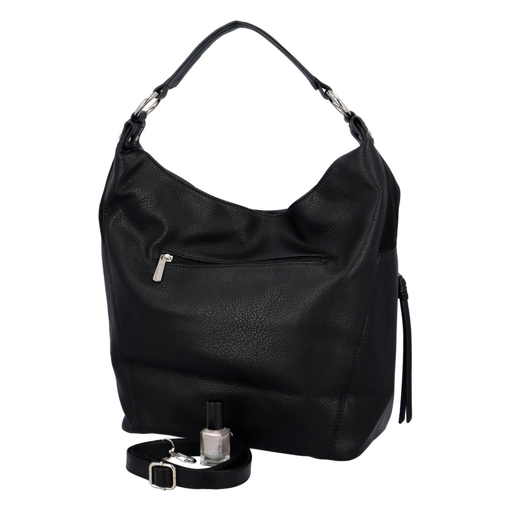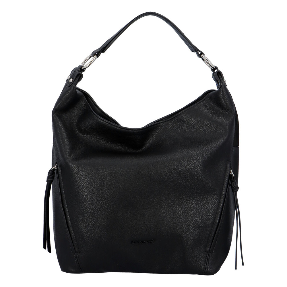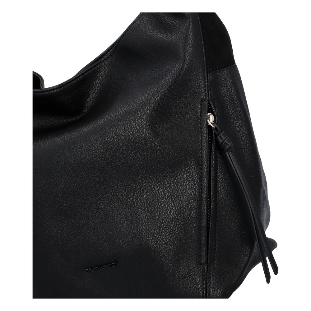 Pokud hledáte nový jarní či letní kousek do svého šatníku, vybírat můžete mezi krásnými a kvalitními kabelkami přes rameno značky David Jones. Prostor Vám u této černé módní krásky rozhodně chybět nebude. Zaujme Vás také její originální design. Celkově je kabelka měkká, má však pevnější dno. Nosit ji můžete za ucho nebo s popruhem. Doplní Váš outfit ve městě, na nákupech, ale i v práci. Neváhejte a objednejte si úžasnou kabelku! Vrátit ji můžete až za 30 dnů! Přední stranu obohacují dvě šikmé kapsy se zipy s pásky. Menší detaily na bocích kabelky imitují broušenou kůži. Spodní strana kabelky je hladká. Hlavní kapsu rozepnete zipem, i zde jsou širší lemy. Uvnitř kabelky najdete klasické potřebné kapsičky na telefon, make-up i drobnosti či cennosti.