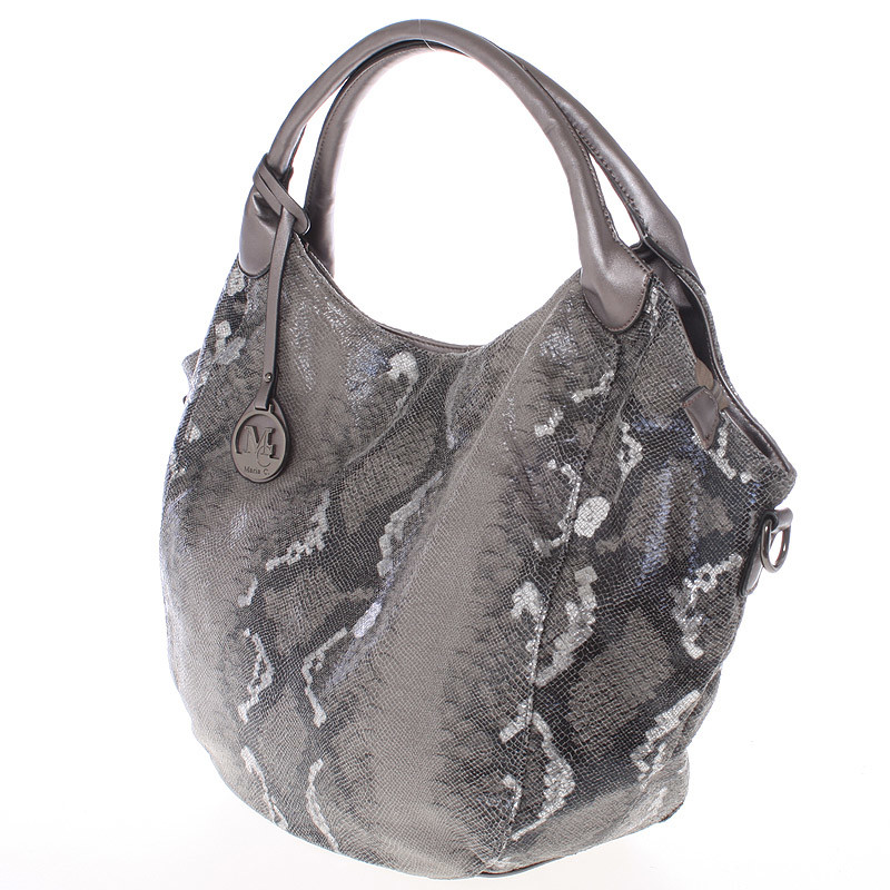 Velká dámská stříbrná kabelka ve stylu hadí kůže - MARIA C Halcyon