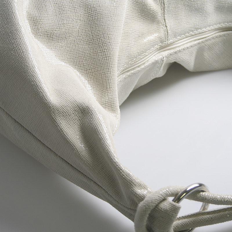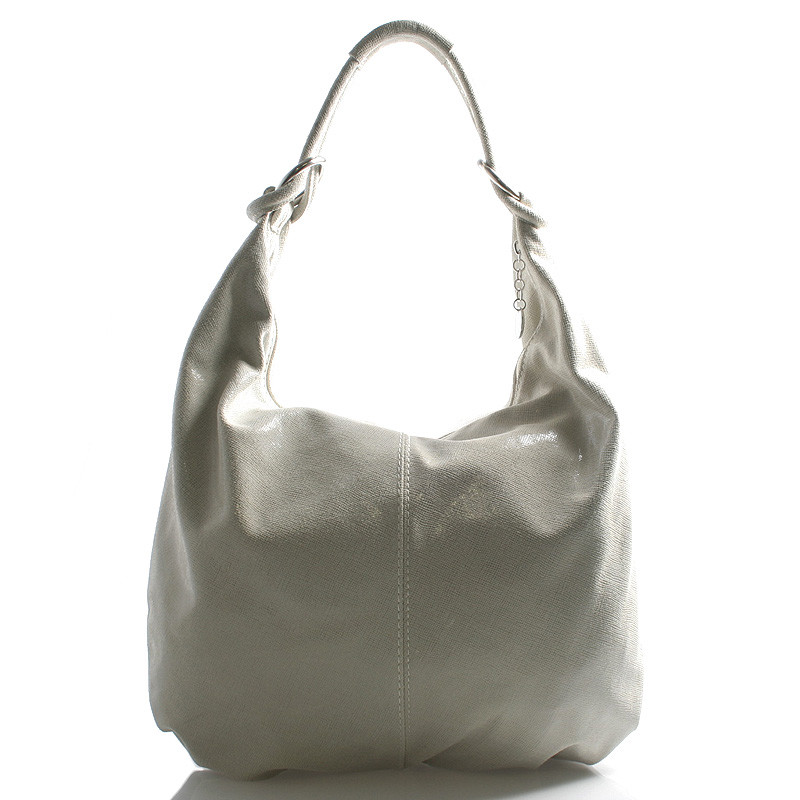 Béžová elegantně sportovní lesklá kožená kabelka ItalY. Měkká kůže ve tvaru vaku se lehce přizpůsobí vašemu nošení. Kabelka pojme všechny každodenní potřebné věci a zbude místo i na malý nákup. Hodí se ke všem typům oblečení. Zapíná se zipem přes celou délku, uvnitř je jedna postranní kapsička na zip. Novinka 2016.