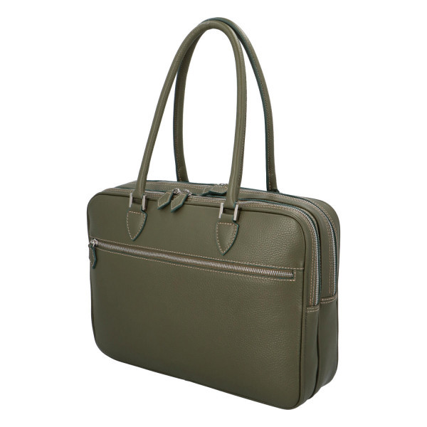 Nově od značky ItalY nabízíme kožené kabelky pro ženy, které jejich práce baví a naplňuje je. Módní kousek přes rameno má styl business kabelky. Kromě delších uší nabízí i celokožený popruh. Kabelka je khaki, pevnější, na přední straně je středně velká kapsa se zipem. Hlavní kapsy jsou tu dvě, obě s duálními zipy. Uvnitř jedné najdete dvě volné kapsičky na telefon a make-up a uvnitř druhé je klasická kapsička se zipem.
