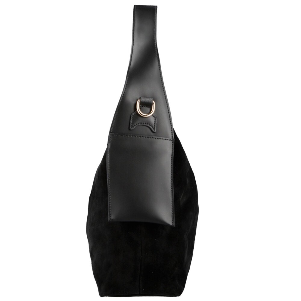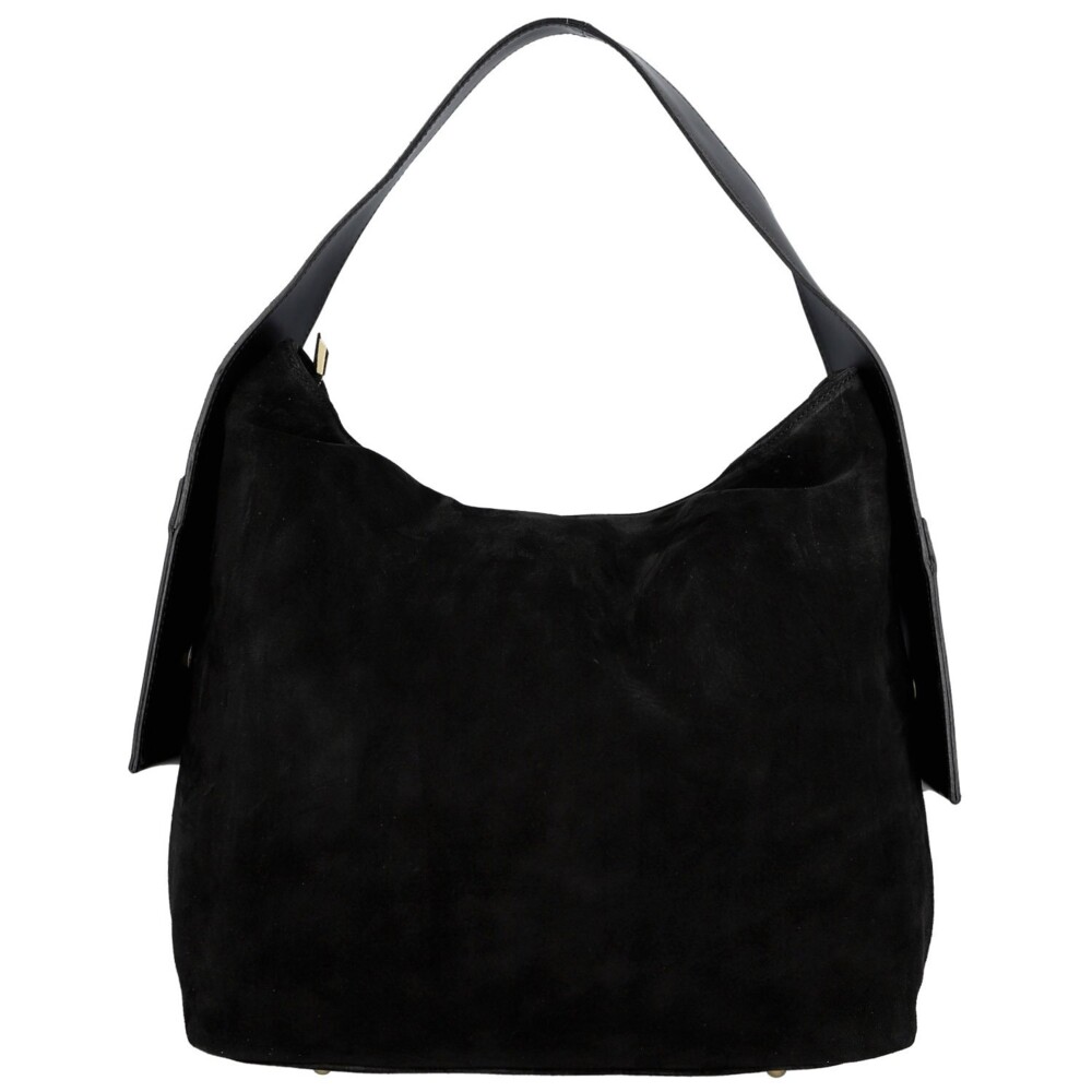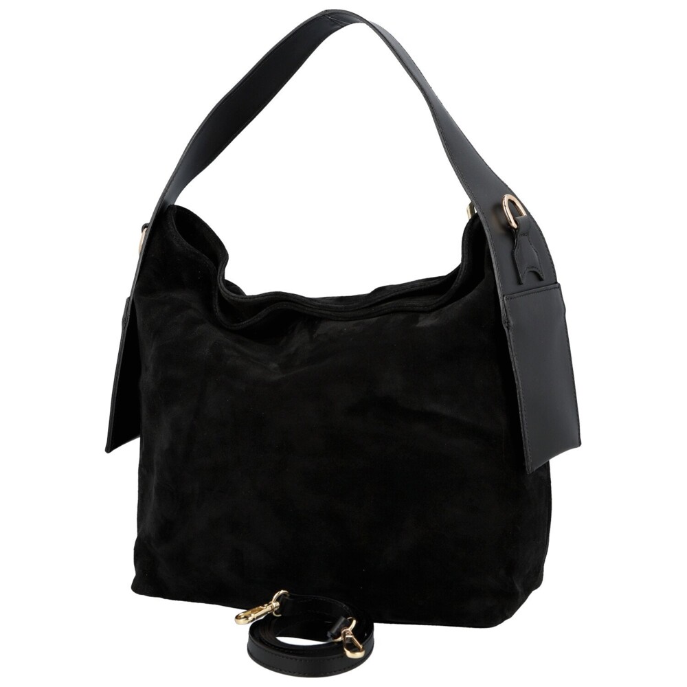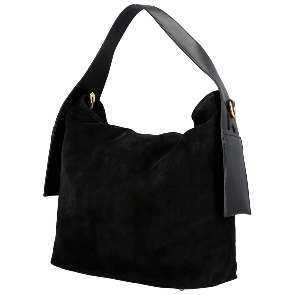 Stylová dámská kabelka z pravé kůže, která zaujme svým jedinečným spojením materiálů i precizním zpracováním. Měkké tělo z broušené kůže působí elegantně a přirozeně, zatímco širší hladké ucho dodává kabelce výraz a pohodlí při nošení. Na koncích ucha se ukrývají drobné kapsičky. Hlavní prostor se uzavírá zipem a v podšívce se nacházejí kapsičky pro dokonalý přehled o vašich věcech. Díky přídavnému dlouhému popruhu ji lze nosit i jako crossbody. Zlaté kování a kovové nožičky na spodní straně dodávají kabelce punc luxusu a chrání ji při odkládání. Ideální pro moderní ženu, která ocení kvalitu, detail a nadčasový design. Objednejte ještě dnes a vyzkoušejte, vrátit ji můžete do 30ti dnů!