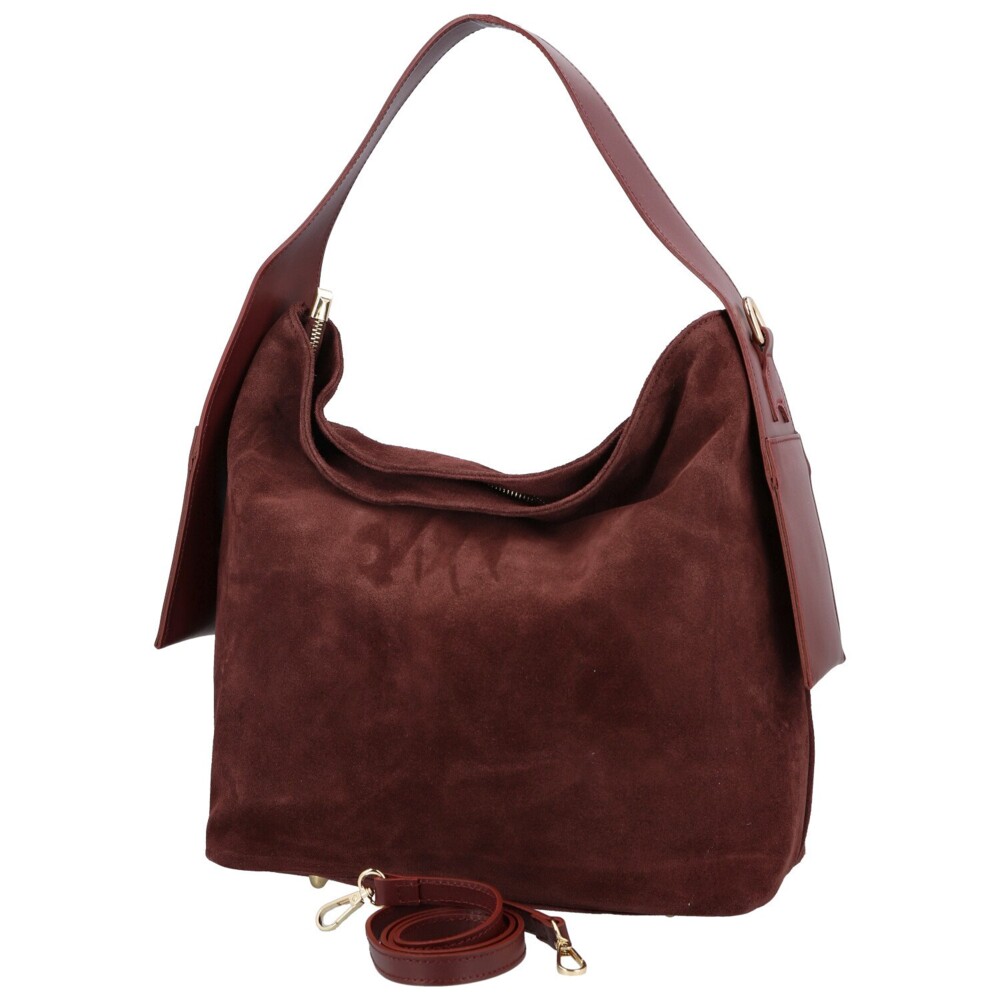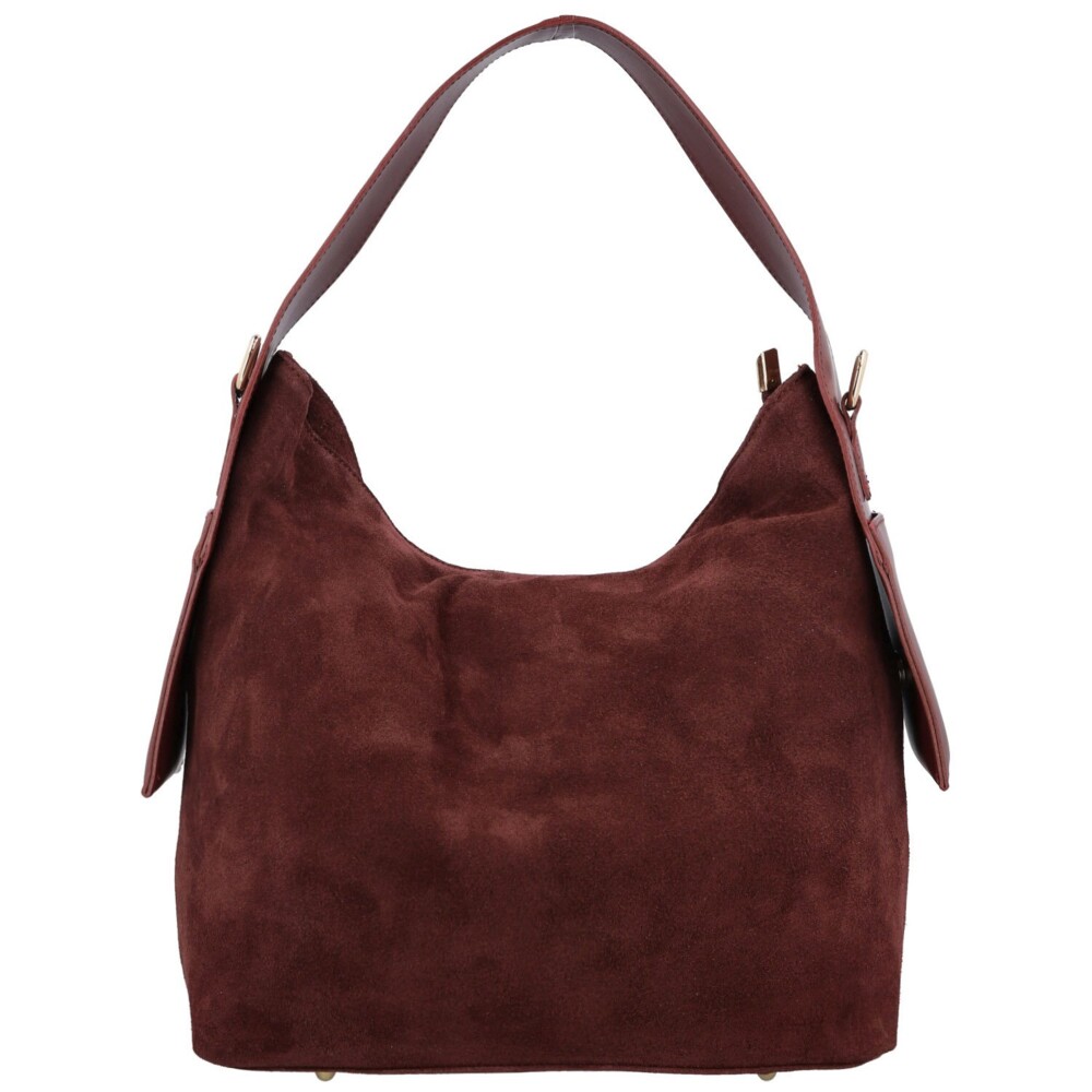 Stylová dámská kabelka z pravé kůže, která zaujme svým jedinečným spojením materiálů i precizním zpracováním. Měkké tělo z broušené kůže působí elegantně a přirozeně, zatímco širší hladké ucho dodává kabelce výraz a pohodlí při nošení. Na koncích ucha se ukrývají drobné kapsičky. Hlavní prostor se uzavírá zipem a v podšívce se nacházejí kapsičky pro dokonalý přehled o vašich věcech. Díky přídavnému dlouhému popruhu ji lze nosit i jako crossbody. Zlaté kování a kovové nožičky na spodní straně dodávají kabelce punc luxusu a chrání ji při odkládání. Ideální pro moderní ženu, která ocení kvalitu, detail a nadčasový design. Objednejte ještě dnes a vyzkoušejte, vrátit ji můžete do 30ti dnů!