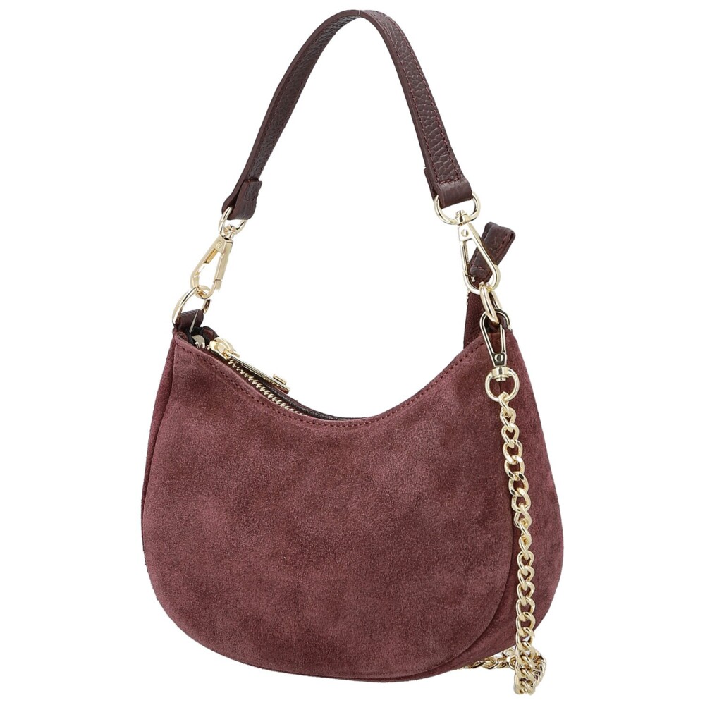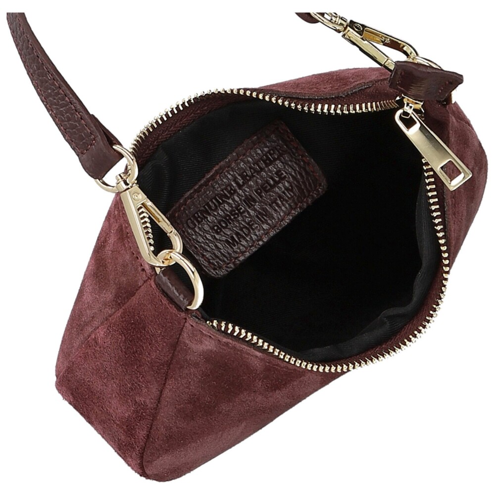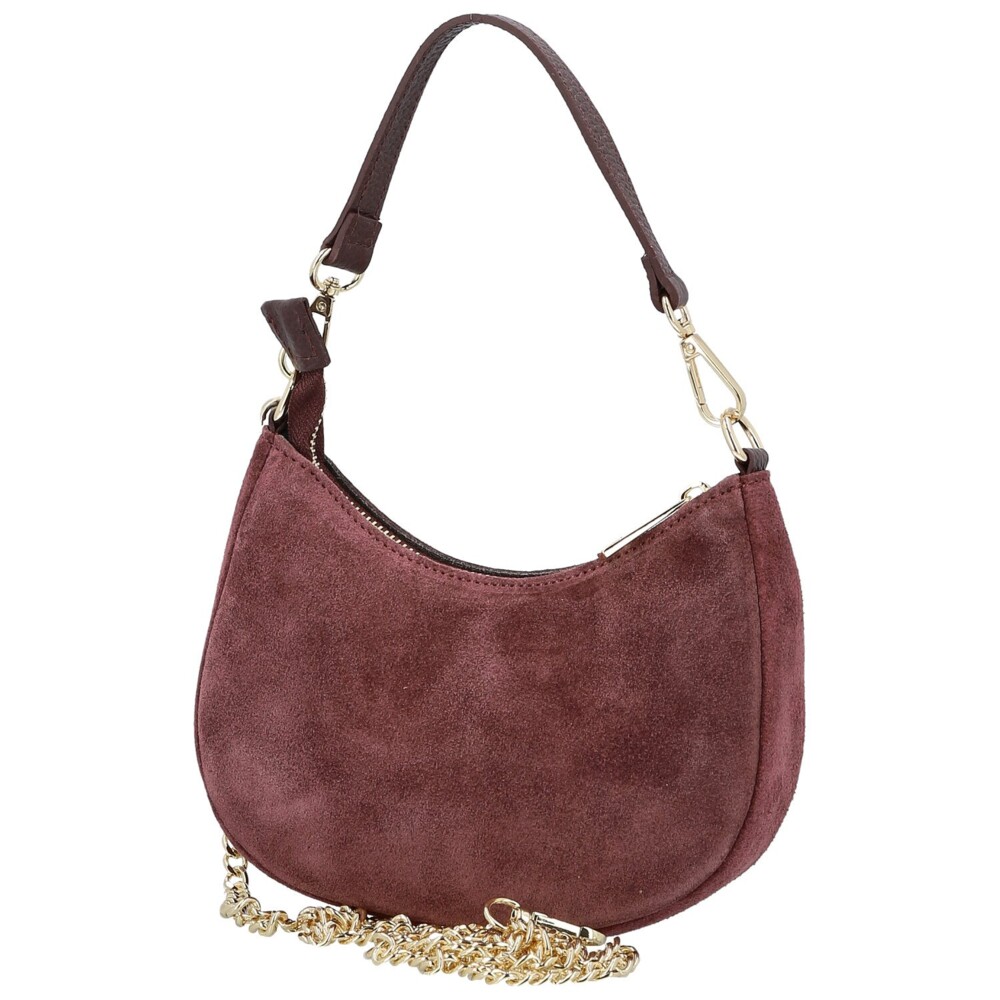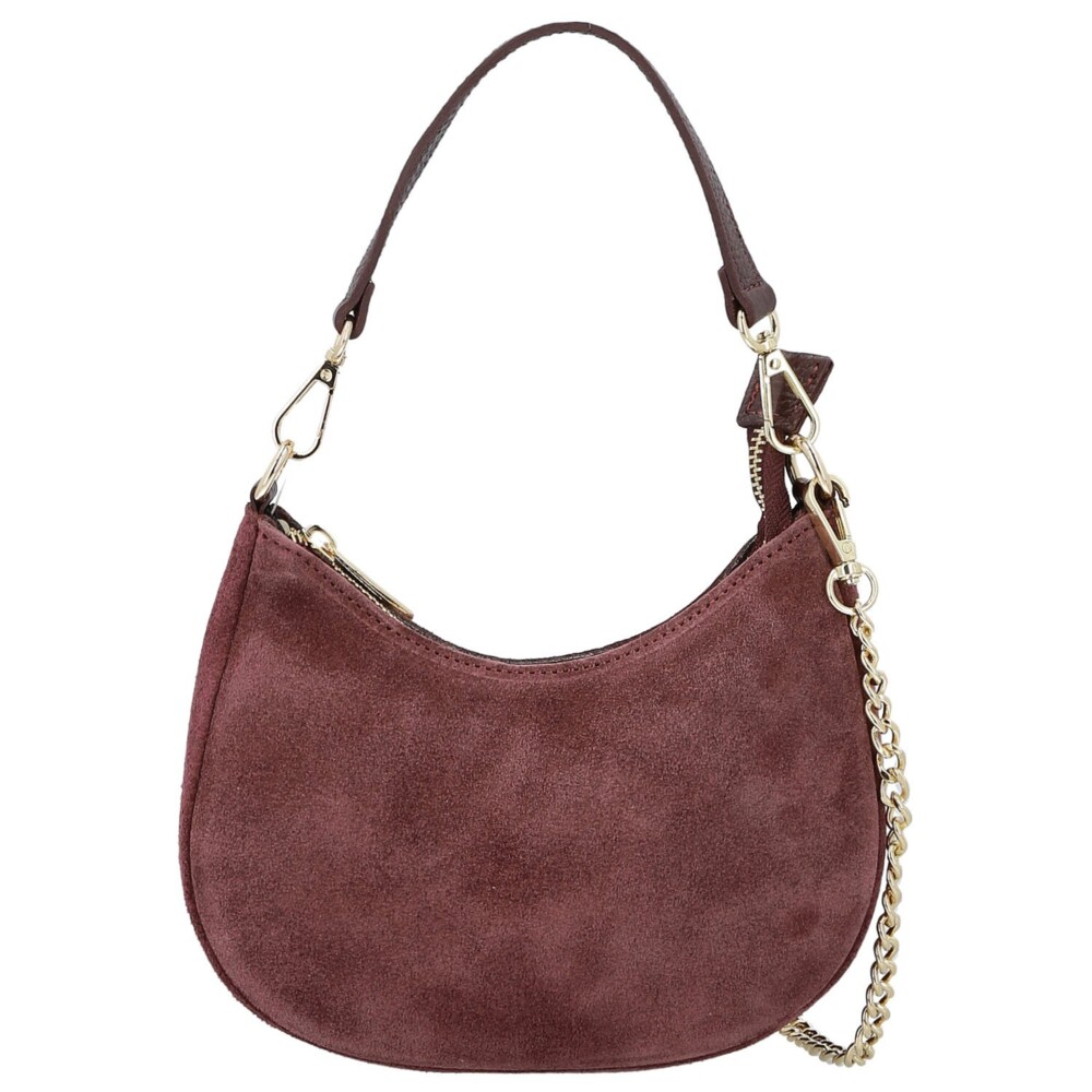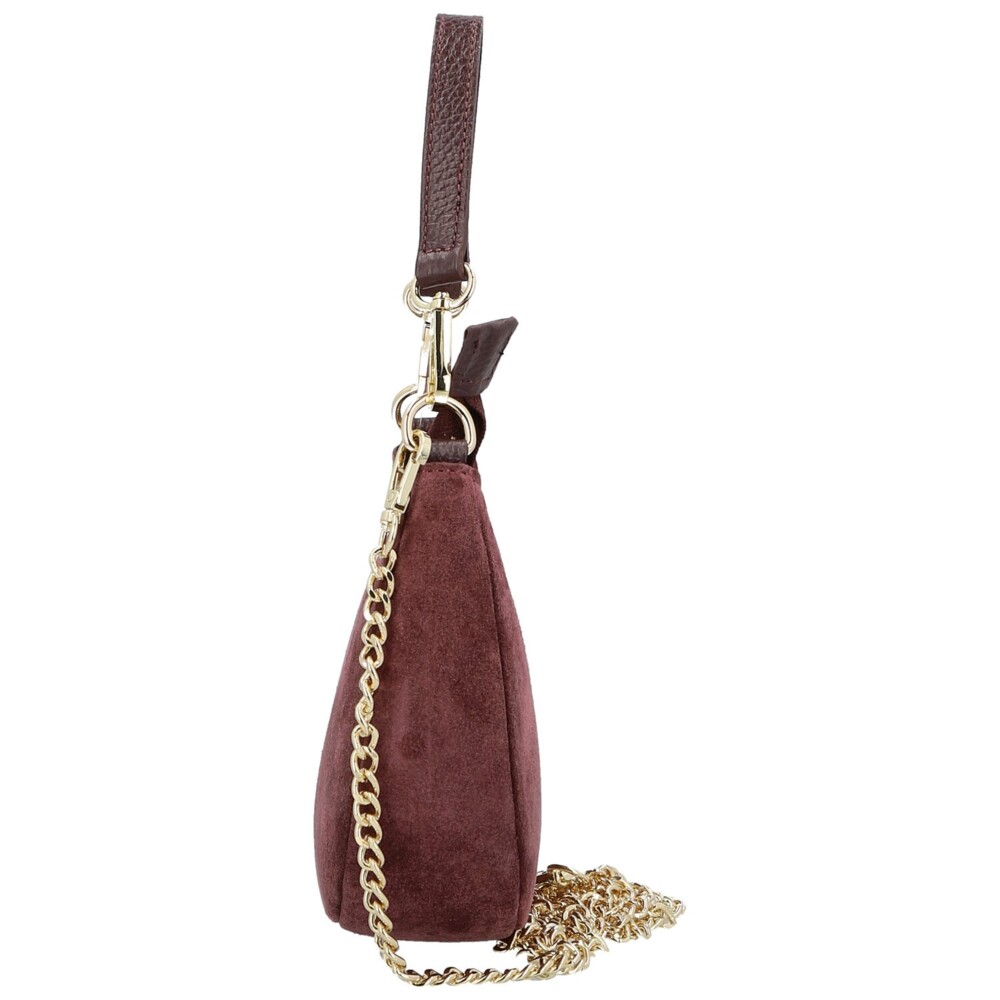 Malá dámská kabelka z pravé broušené kůže zaujme svým elegantním lodičkovým tvarem a jemně sametovým povrchem, který na dotek i pohled působí luxusně. Hlavní kapsa se uzavírá zipem a uvnitř se nachází kapsičky v podšívce pro přehledné uložení drobností. Kabelka je doplněna dvěma možnostmi nošení - krátkým koženým popruhem na připnutí pro klasické držení v ruce či na rameni a dlouhým zlatým řetízkem, který jí propůjčuje sofistikovaný vzhled i možnost nosit ji pohodlně křížem. Zlaté kování dokonale ladí s teplým tónem broušené kůže a dodává kabelce nádech elegance i stylovému lesku. Objednejte ještě dnes a vyzkoušejte, vrátit ji můžete do 30ti dnů!