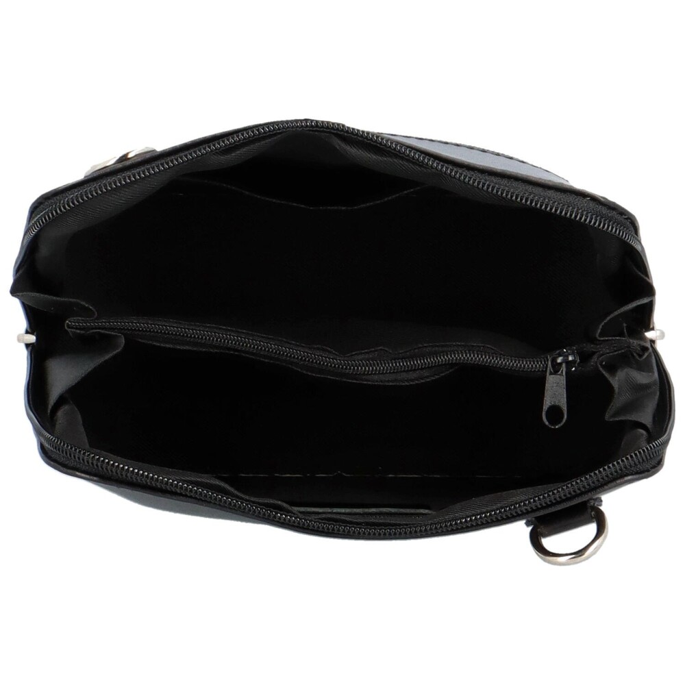 Tato svůdně řešená crossbody kabelka italské značky Delami, je perfektní kousek do Vaší garderoby. Stříbrné kování dodávají kabelce ten správný šmrnc. Je uzavíratelná na zip a má zadní kapsičku pro Vaše drobnosti. Uvnitř kabelky najdete středovou zipovou kapsičku. Dno je oválného tvaru a popruh je nastavitelný dle Vašeho přání. Objednejte ještě dnes a vyzkoušejte, vrátit ji můžete až do 30 dnů!