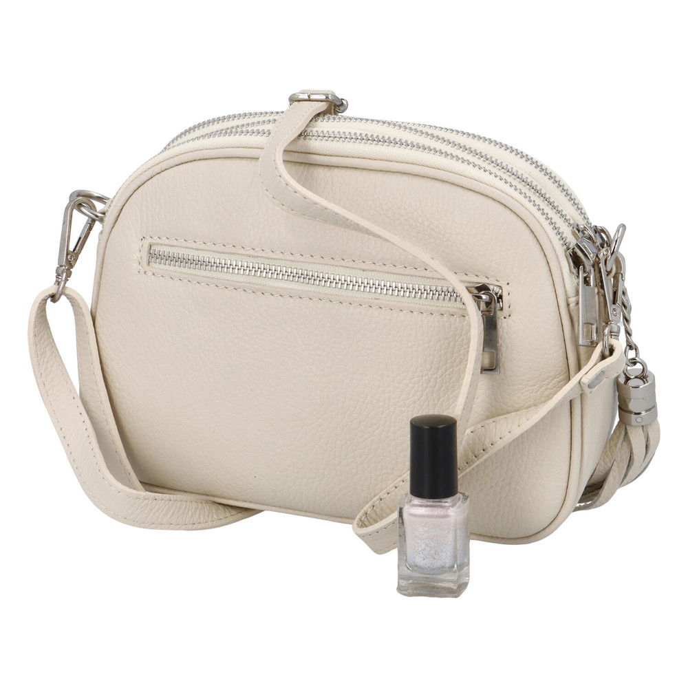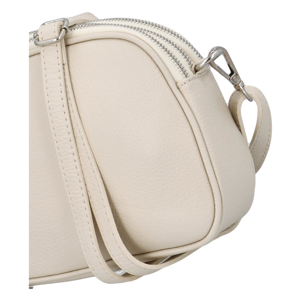 Malý elegantní model crossbody kabelky, kterou můžete nosit i přes rameno, od značky ItalY. Novinka. Objednejte ještě dnes a vyzkoušejte, vrátit ji můžete až za 30 dnů! Kožená kabelka je pro ženy, které mají rády pevnější tvar a lehce vrásčitý design. Kabelka má béžovou barvu, otevírá se dvěma zipy a najdete zde prostor pro své potřebné a osobní věci. Většina kapes jsou se zipem, vnitřní kapsička je volná.