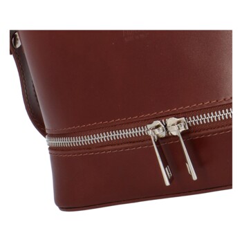 Kožené kousky jsou nejkvalitnější, proto jsou tou správnou volbou. Tato kabelka nabízí praktickou kapsu na zip i oblíbený pevný tvar, pro praktické užívání po celý den. Vně nechybí postranní přihrádky na drobnosti i menší kapsa na zip. Zadní část má také menší kapsu na zip, ideální pro uložení třeba klíčů. Popruh je dlouhý, pro nošení jak na rameni, tak do kříže. Přední díl zdobí stříbrné ozdobné zipy i logo značky. Přírodní materiál Vám zaručí stálost tohoto kousku. Tak objednejte ještě dnes a vyzkoušejte, vrátit jej můžete do 30ti dnů.
