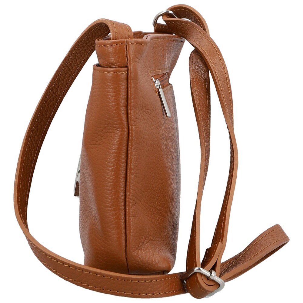 Dámská kožená crossbody kabelka koňaková - Delami Vera Pelle Finni