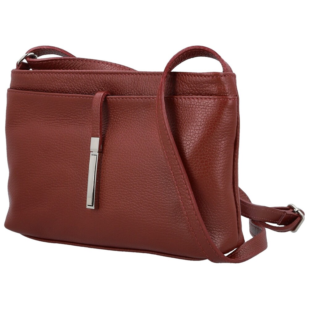 Dámská kožená crossbody kabelka tmavě červená - Delami Vera Pelle Finni
