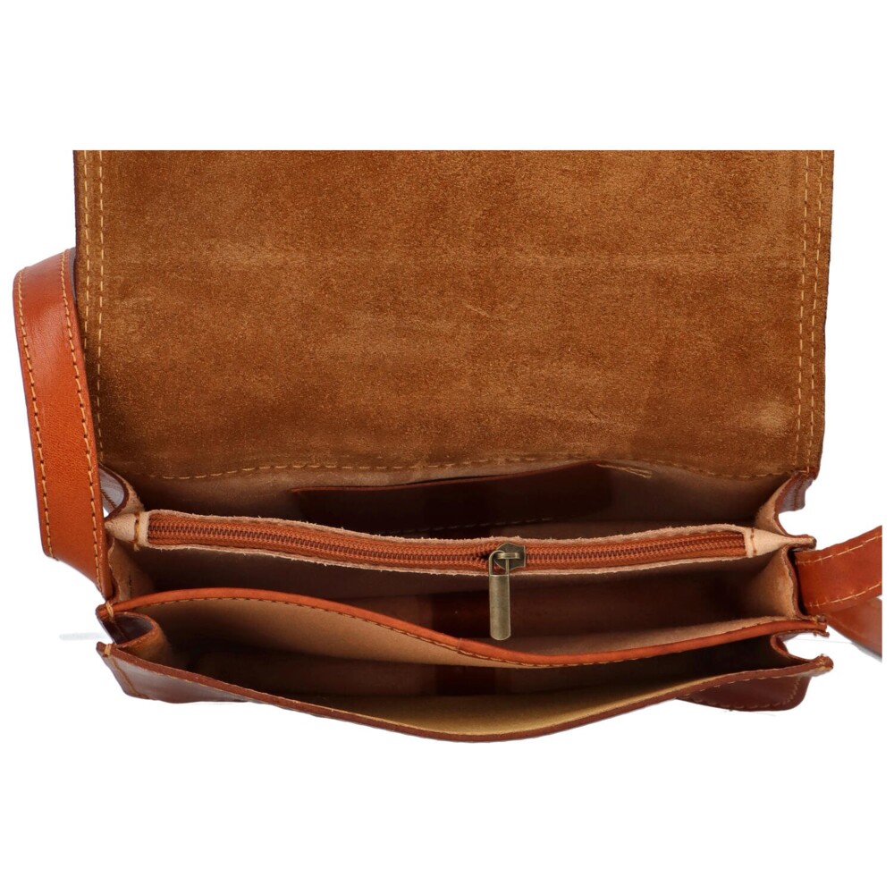 Dámská kožená crossbody koňaková - Delami Vera Pelle Satyrana
