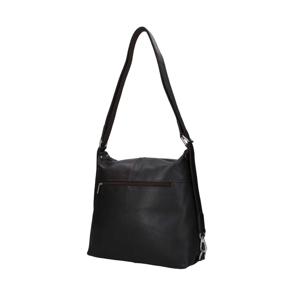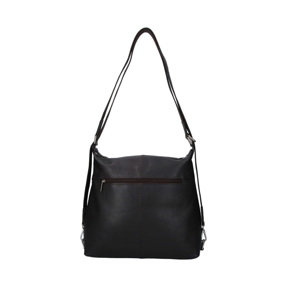 Nové kožené modely pro ženy od značky SendiDesign. Objednejte ještě dnes a vyzkoušejte, vrátit ji můžete až za 30 dnů! Tmavě hnědá středně velká dámská kabelka z hovězí kůže, která se může změnit během pár vteřin na kožený batůžek. Má dlouhé uši s kovovými sponami a díky ním se během chvilky kabelka přemění. Nosit ji lze tedy velmi prakticky přes rameno nebo na ramenách. Má oblíbený střih i design. Hlavní kapsa je na zip. Další užitečné kapsy se zipy najdete na přední i zadní straně. Uvnitř jsou samozřejmě kapsičky na drobnosti, cennosti i kosmetiku. Jde o měkkou kabelku/batoh s pevnějším dnem. Měnit styl můžete každý den.