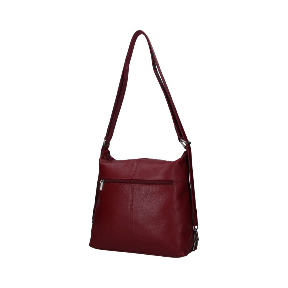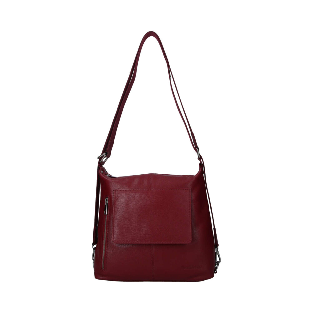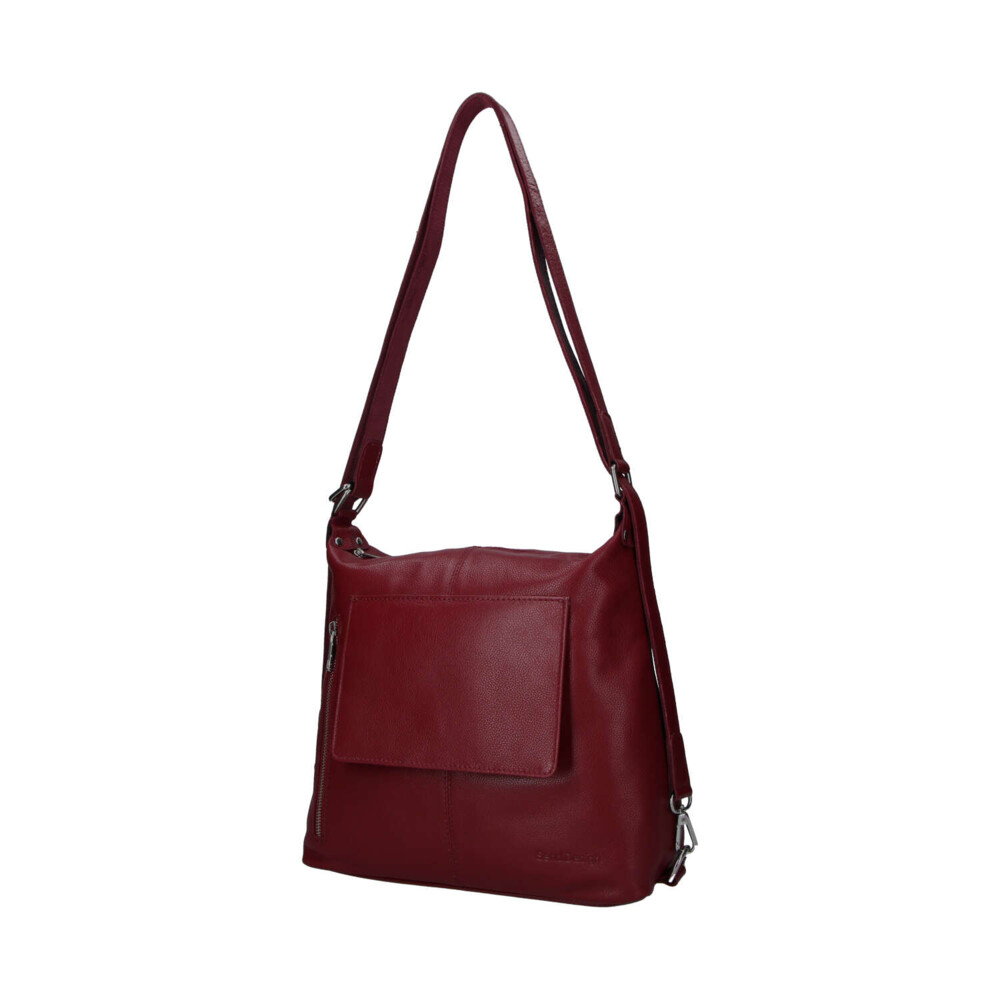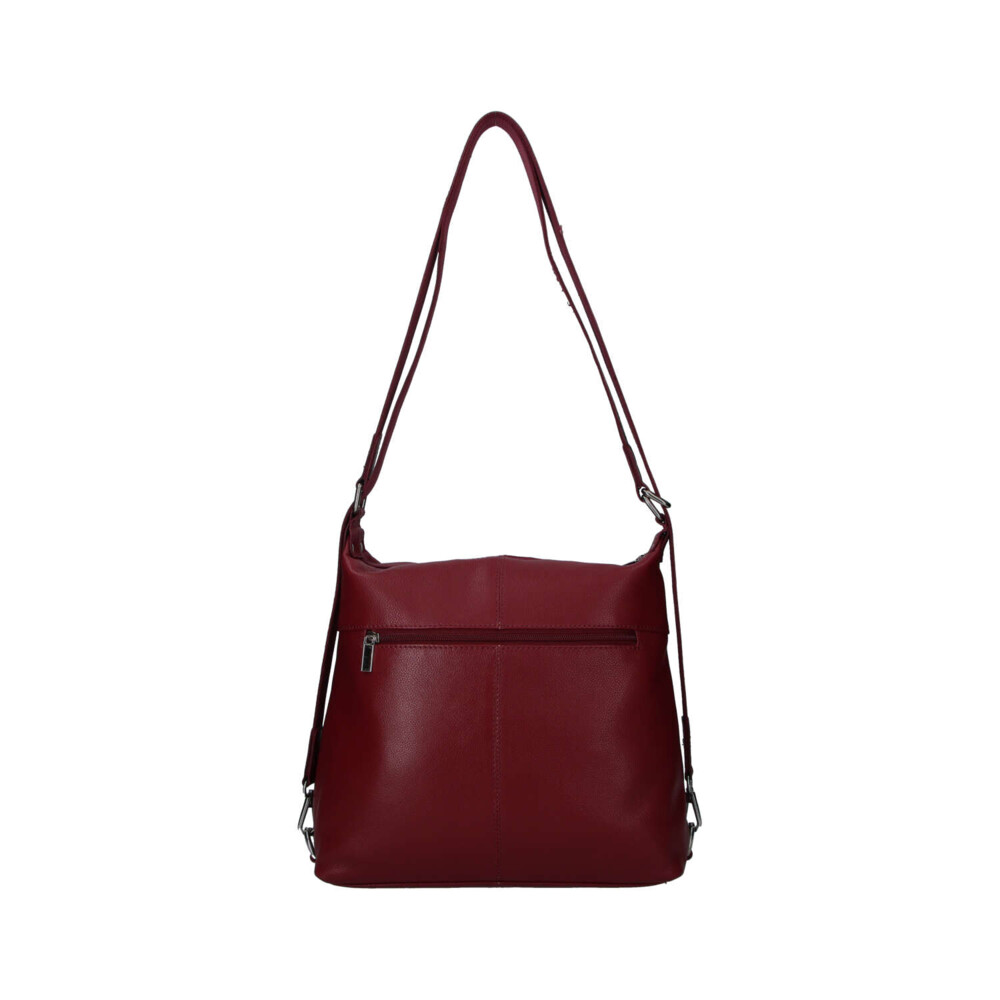 Nové kožené modely pro ženy od značky SendiDesign. Objednejte ještě dnes a vyzkoušejte, vrátit ji můžete až za 30 dnů! Vínová středně velká dámská kabelka z hovězí kůže, která se může změnit během pár vteřin na kožený batůžek. Má dlouhé uši s kovovými sponami a díky ním se během chvilky kabelka přemění. Nosit ji lze tedy velmi prakticky přes rameno nebo na ramenách. Má oblíbený střih i design. Hlavní kapsa je na zip. Další užitečné kapsy se zipy najdete na přední i zadní straně. Uvnitř jsou samozřejmě kapsičky na drobnosti, cennosti i kosmetiku. Jde o měkkou kabelku/batoh s pevnějším dnem. Měnit styl můžete každý den.