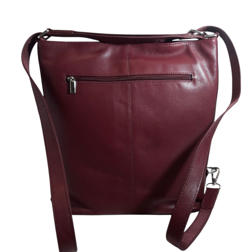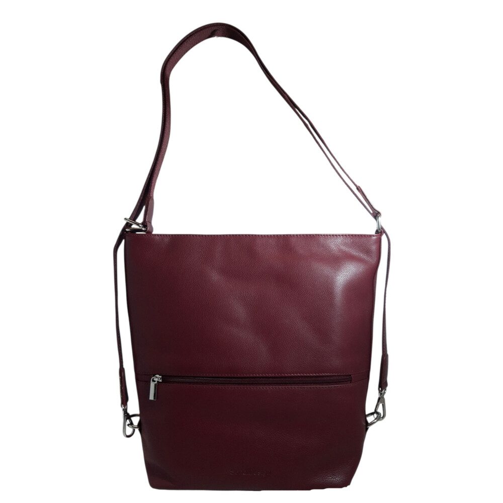 Nové kožené kabelky a batůžky pro ženy od značky SendiDesign. Objednejte ještě dnes a vyzkoušejte, vrátit ji můžete až za 30 dnů! Vínová menší dámská kabelka z hovězí kůže. Kabelku noste přes rameno nebo jako batoh! Má hlavní kapsu na zip. Jde o měkký typ kabelky s dlouhýma ušima/popruhy a celkem hlubokým dnem. Model je designově jednoduchý a přitom velmi přitažlivý. Pojme veškeré osobní věci jako jsou doklady, peněženka, diář, brýle, šátek, telefon a kosmetika. Samozřejmostí jsou tři menší kapsičky a přihrádky na drobnosti. Kabelka, která vám bude dobře sloužit každý den. :)