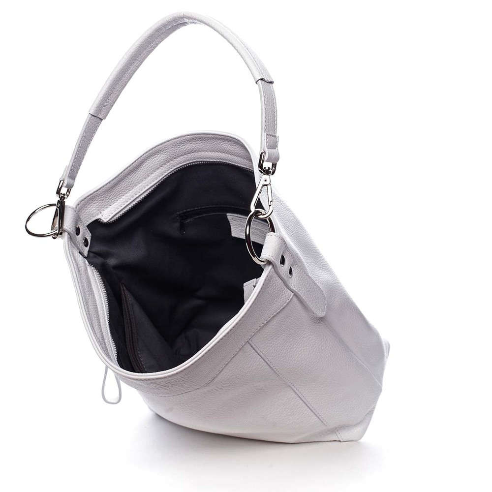 Stylová a elegantní měkká kožená kabelka s kapsou na přední straně, značky ItalY, je větších rozměrů. Nosí se zejména přes rameno. K dispozici má odnímatelné ucho i popruh. Potřebujete kabelku do města, divadla nebo do společnosti? Novinka 2019. Objednejte ještě dnes a vyzkoušejte, vrátit ji můžete až za 30 dnů! Kabelka je z pravé kůže, má jednodušší strukturovaný design a hlavní kapsu na zip. Uvnitř je dělená přepážkou, kapsou na zip. Dále zde naleznete tři kapsičky na kosmetiku, doklady i na drobnosti. Její dno je pevnější. Nechybí zde kapsa se zipem na zadní straně kabelky.