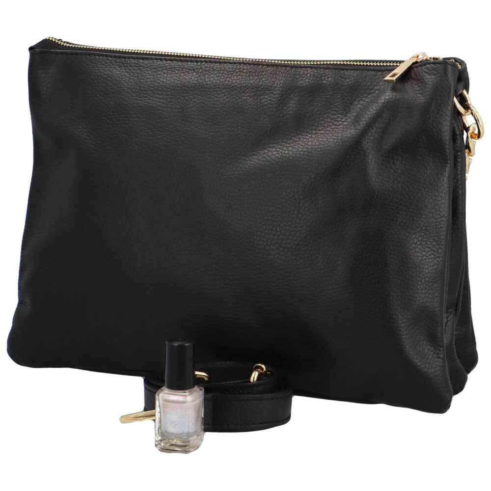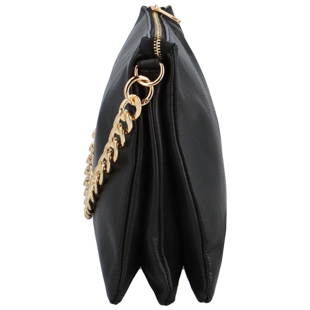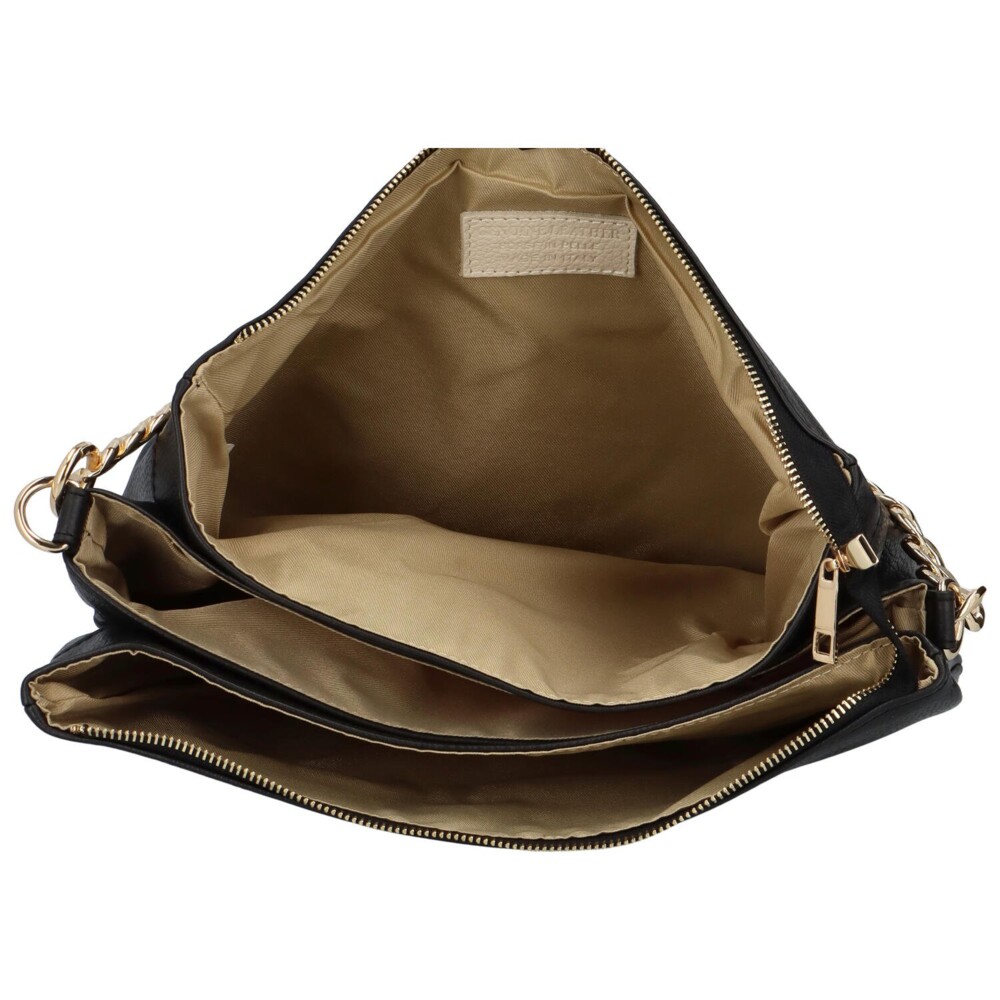 Kožená kabelka vhodná pro všechny, co milují kombinaci pohodlí a elegance. Skvělá na každodenní nošení díky svému přizpůsobivému designu a prostorným úložným kapsám. Hlavní úložný prostor je rozdělen do tří samostatných kapes, abyste Vaše věci mohla mít přehledně roztříděné. Všechny kapsy pak zabezpečíte vkusným zipem zlaté barvy. Ten je dokonale sladěn s kovaným popruhem ve stylu řetězu. Pro Vaši plnou spokojenost je k dispozici i kožený popruh. Objednejte ještě dnes a vyzkoušejte, vrátit ji můžete do 30ti dnů!
