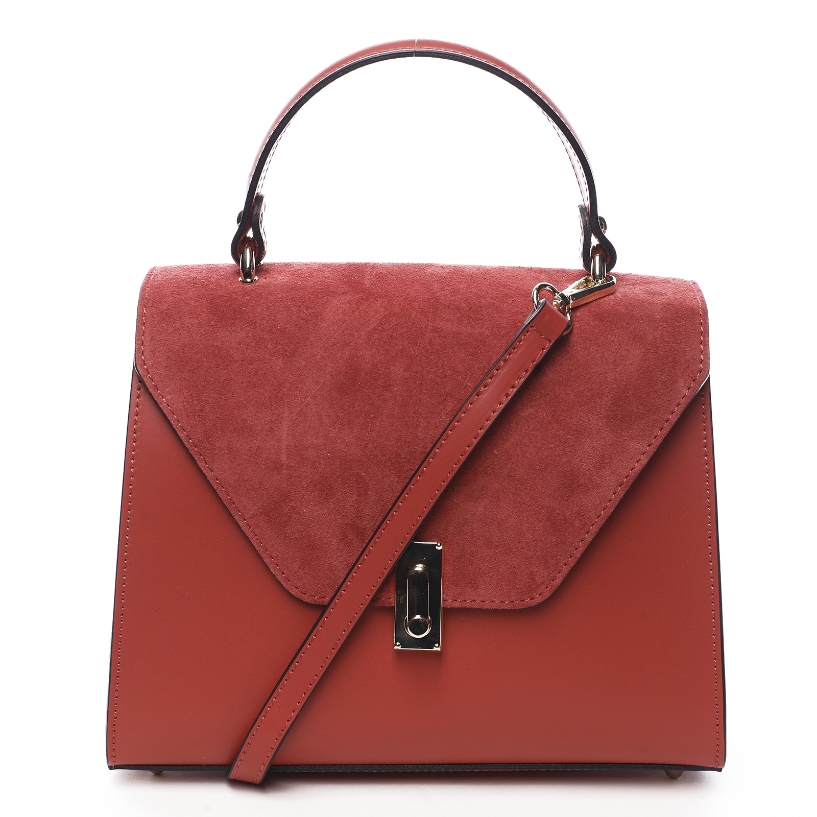 Krásná dámská kožená kabelka, která bude skvělá nejen na cesty do práce, ale i za zábavou či nákupech. Je vyrobená z pevné kůže a překlop je šitý ze semišové úpravy přírodního materiálu. Klopu uzavírá praktický zámeček. Prostor v kabelce je dosti velký, pro uložení Vašich osobních věcí, uvnitř nechybí postranní menší přihrádky na drobnosti či mobil. Ucho je pevné, krátké do ruky, dlouhý popruh pro pohodlné nošení na rameni, či do kříže, je na připnutí. Spodní část tašky je vybavena nožičkami proti poškrábání. Objednejte ještě dnes a vyzkoušejte, vrátit ji můžete až za 30 dnů!