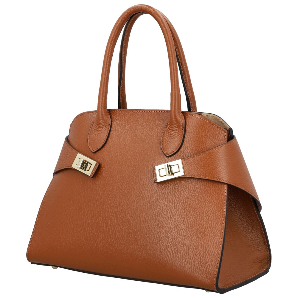 Dámská kožená kabelka do ruky koňaková - Delami Vera Pelle Seia