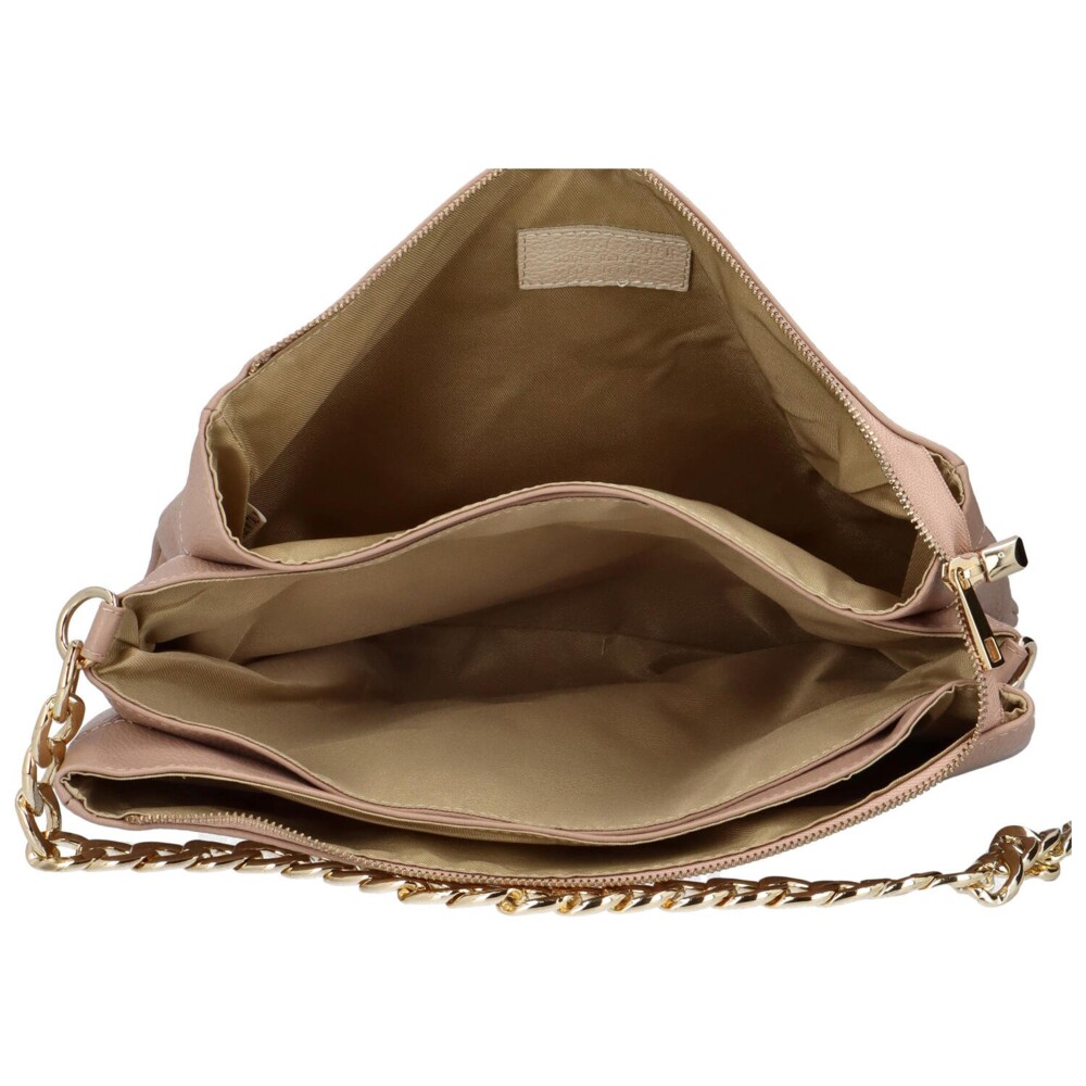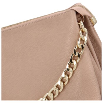 Kožená kabelka vhodná pro všechny, co milují kombinaci pohodlí a elegance. Skvělá na každodenní nošení díky svému přizpůsobivému designu a prostorným úložným kapsám. Hlavní úložný prostor je rozdělen do tří samostatných kapes, abyste Vaše věci mohla mít přehledně roztříděné. Všechny kapsy pak zabezpečíte vkusným zipem zlaté barvy. Ten je dokonale sladěn s kovaným popruhem ve stylu řetězu. Pro Vaši plnou spokojenost je k dispozici i kožený popruh. Objednejte ještě dnes a vyzkoušejte, vrátit ji můžete do 30ti dnů!