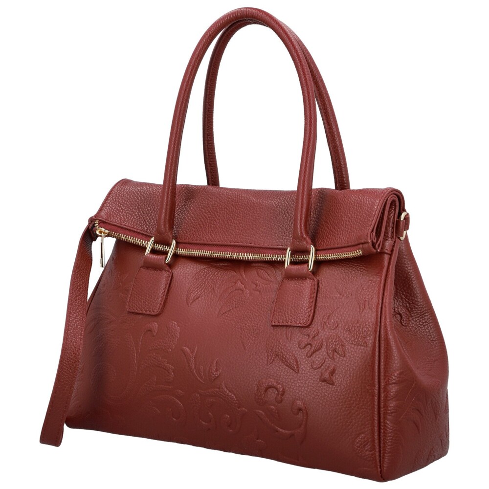 Dámská kožená kabelka do ruky tmavě červená - Delami Vera Pelle Arjana