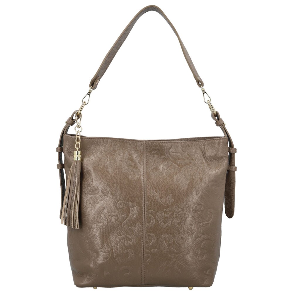Stylová kožená kabelka na rameno, která zaujme svým originálním zpracováním i luxusním vzhledem. Povrch kabelky zdobí nádherný plastický reliéf s květinovým motivem, jenž jí dodává jedinečný šarm a umělecký nádech. Hlavní kapsa je uzavíratelná na zip a v podšívce ukrývá praktické kapsičky pro dokonalý přehled. Na zadní straně najdete další zipovou kapsu na drobnosti. Kabelka má dva popruhy - kratší pro elegantní nošení na ramenní a delší, nastavitelný, který můžete snadno připnout podle potřeby. Doplňuje ji zlaté kování a ozdobný střapec, které podtrhují její sofistikovaný vzhled. Objednejte ještě dnes a vyzkoušejte, vrátit ji můžete až za 30 dnů!