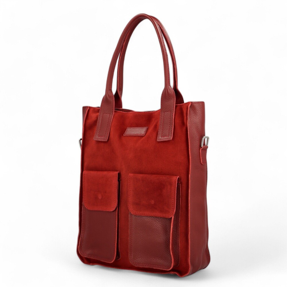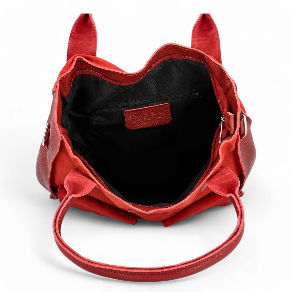 Kabelka je dokonale zpracovaná s důrazem na detail, jako je kombinace hladké a broušené kůže. Přední strana je z broušené kůže a doplní jí dvě kožené kapsy se semišovou klopou s magnetickými druky. Boční strany jsou také kožené a zadní strana zase z broušené kůže. Tento designový kousek od italských návrhářů se opravdu povedl, spojení hladké a broušené kůže je opravdu velmi pěkné. Kabelka je dostatečně velká, její hlavní prostor zajistíte zipem. Interiér je prostorný a disponuje bočními kapsičkami v podšívce. Uši jsou kožené, pevné a padnou do ruky i na rameno. Po přidání dlouhého popruhu s nastavitelnou délkou, umožní nošení na rameni i do kříže. Stříbrné kování doladí už tak perfektní vzhled kabelky. Objednejte ještě dnes a vyzkoušejte, vrátit ji můžete až do 30 dnů!