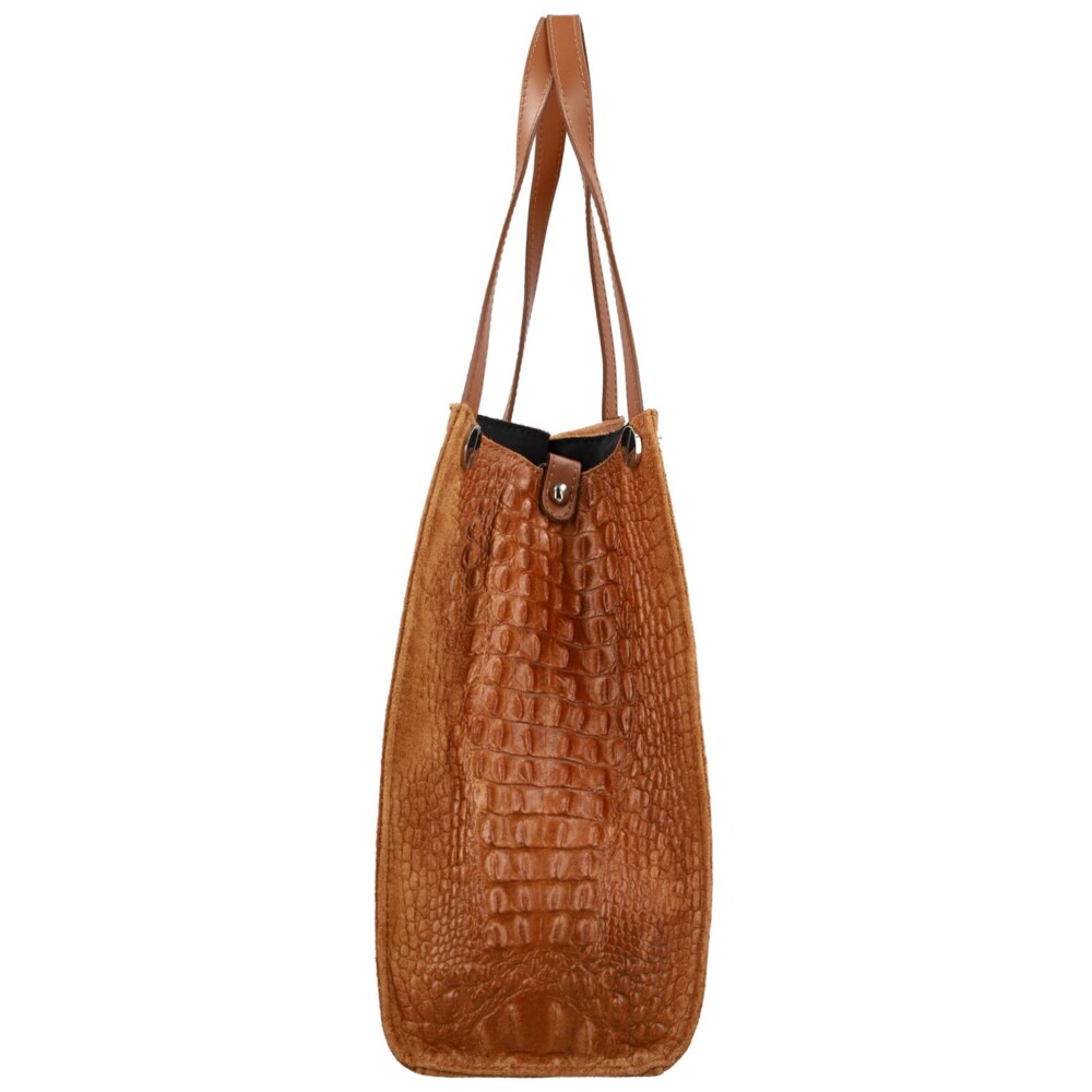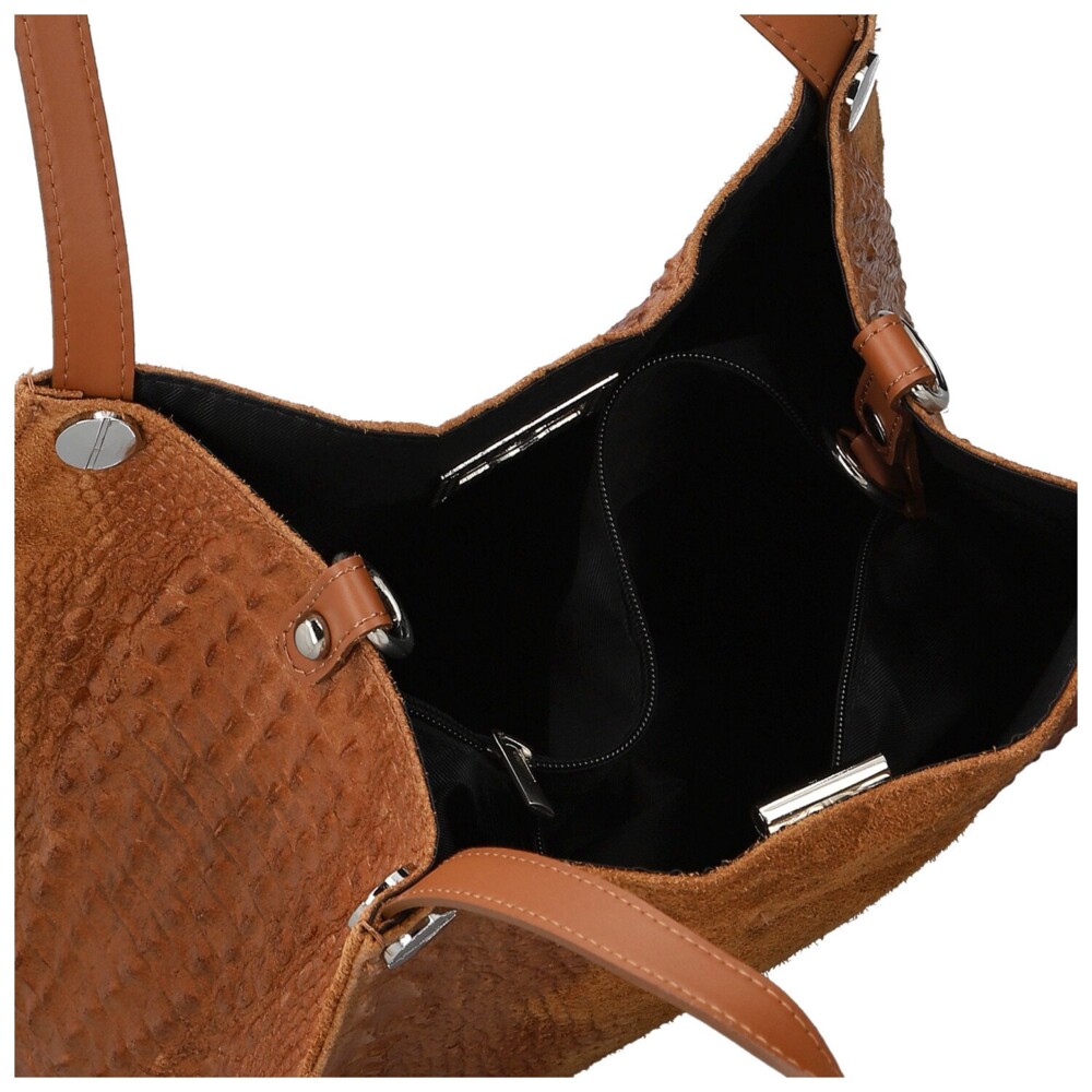 Styl a odvaha se setkávají v této kožené kabelce na rameno, která kombinuje měkkou broušenou kůži s lesklým hadím vzorem pro maximální efekt. Elegantní kožená ucha se stříbrnými detaily působí luxusně, zatímco hlavní kapsa se zapíná na stříbrný kovový zámeček, který chrání vaše věci. Uvnitř najdete praktickou zipovou kapsu, která poslouží jako organizér pro drobnosti. Dlouhý kožený popruh umožní pohodlné nošení přes rameno, ať už míříte do práce, na kávu s kamarádkou, nebo na večerní procházku městem. Kabelka, která zaujme na první pohled a nikdy nezklame. Objednejte ještě dnes a vyzkoušejte, vrátit ji můžete do 30ti dnů!