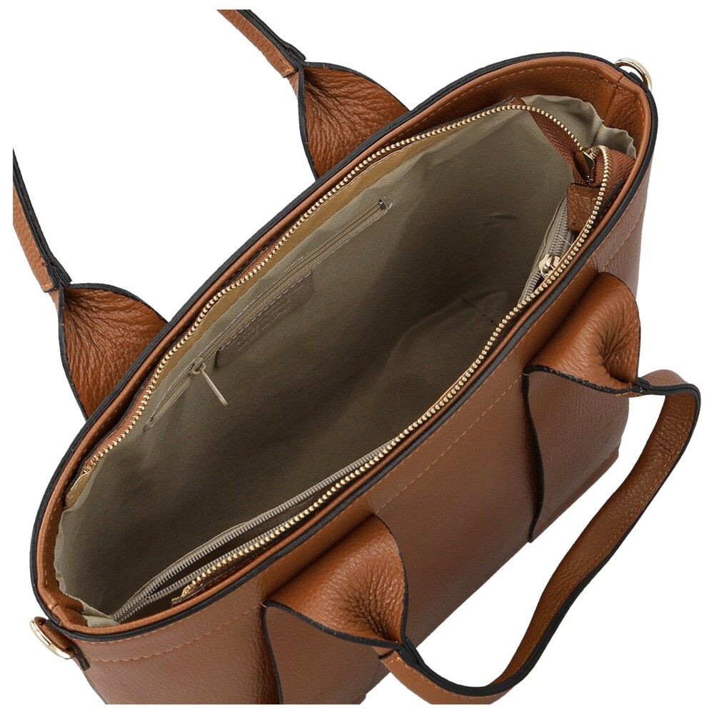 Dámská kožená kabelka na rameno koňaková - Delami Vera Pelle Nadiya