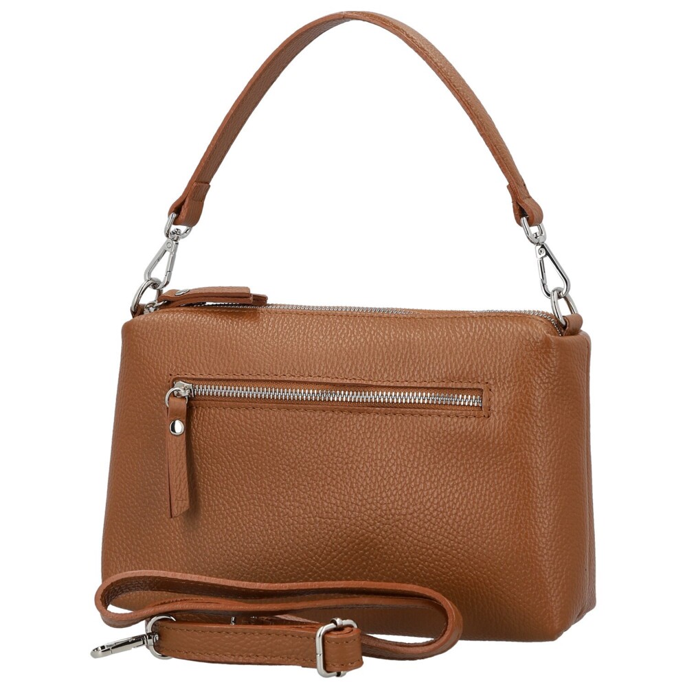 Menší dámská kožená kabelka na rameno, která kombinuje praktičnost s elegantním a moderním vzhledem. Kabelka nabízí dvě prostorné hlavní kapsy na stříbrné zipy, jež bezpečně uchovají vaše nezbytnosti. Uvnitř kapes jsou menší kapsičky v podšívce, ideální pro organizaci drobností. Na zadní straně se nachází další zipová kapsa pro rychlý přístup k věcem, které potřebujete mít po ruce. Kabelka je navržena pro flexibilní nošení, krátký popruh umožňuje pohodlné držení v ruce nebo nošení přes rameno, zatímco dlouhý, nastavitelný popruh se snadno připne pro nošení do kříže. Stříbrné kovové detaily podtrhují nadčasový design a přidávají kabelce jemný luxusní akcent. Objednejte ještě dnes a vyzkoušejte, vrátit ji můžete až za 30 dnů!