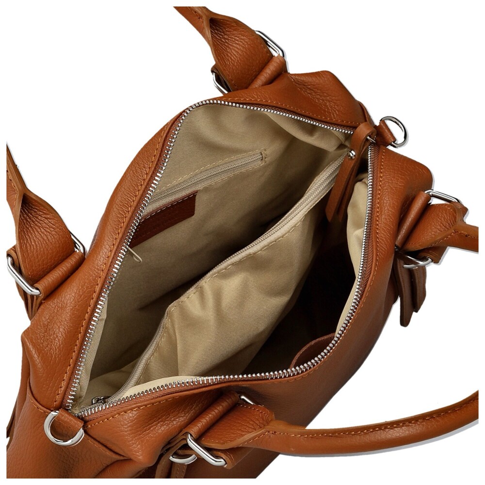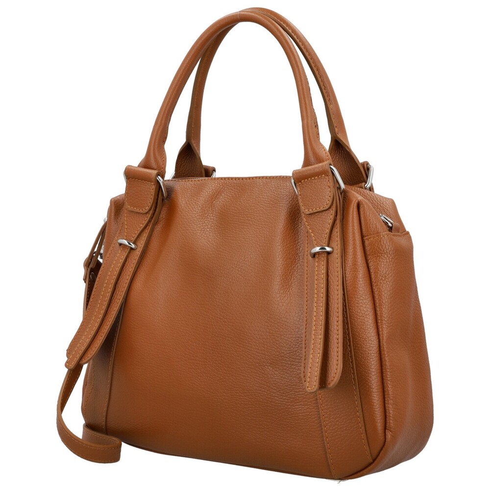 Dámská kožená kabelka na rameno koňaková - Delami Vera Pelle Tirza