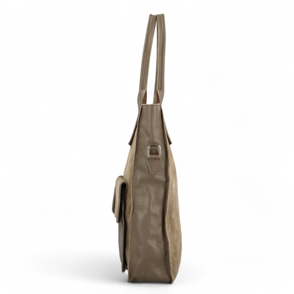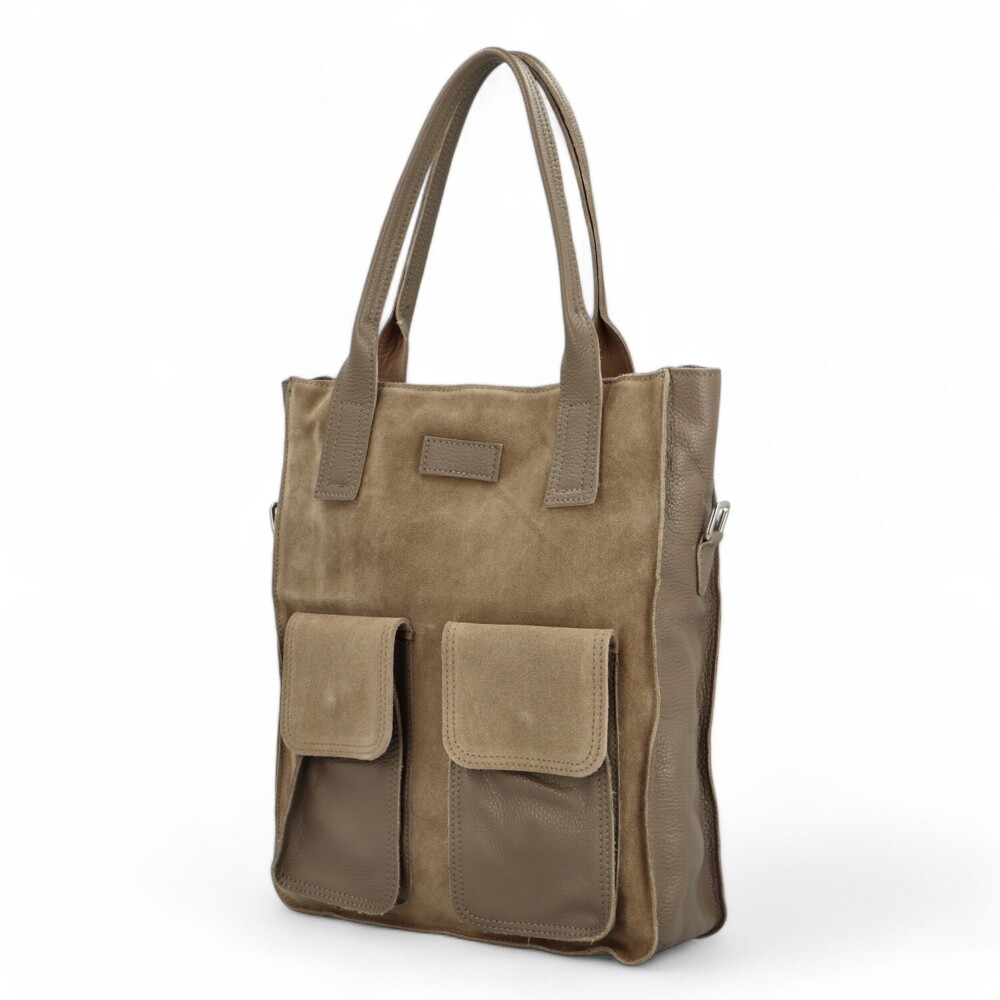 Kabelka je dokonale zpracovaná s důrazem na detail, jako je kombinace hladké a broušené kůže. Přední strana je z broušené kůže a doplní jí dvě kožené kapsy se semišovou klopou s magnetickými druky. Boční strany jsou také kožené a zadní strana zase z broušené kůže. Tento designový kousek od italských návrhářů se opravdu povedl, spojení hladké a broušené kůže je opravdu velmi pěkné. Kabelka je dostatečně velká, její hlavní prostor zajistíte zipem. Interiér je prostorný a disponuje bočními kapsičkami v podšívce. Uši jsou kožené, pevné a padnou do ruky i na rameno. Po přidání dlouhého popruhu s nastavitelnou délkou, umožní nošení na rameni i do kříže. Stříbrné kování doladí už tak perfektní vzhled kabelky. Objednejte ještě dnes a vyzkoušejte, vrátit ji můžete až do 30 dnů!