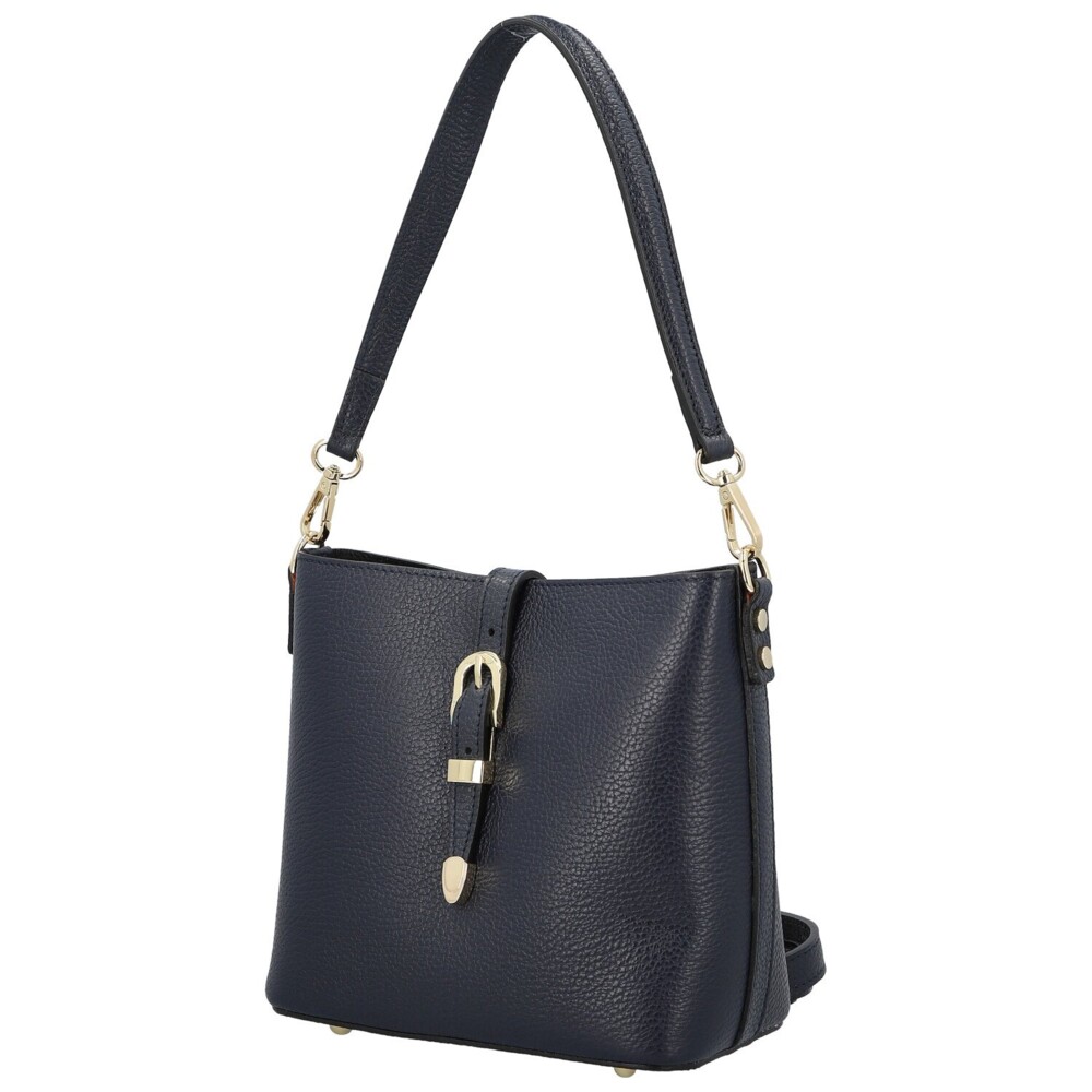 Dámská kožená kabelka na rameno tmavě modrá - Delami Vera Pelle Antoanet