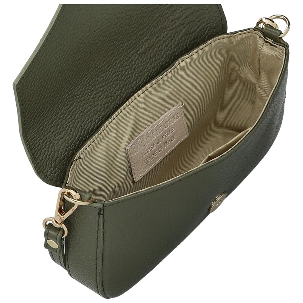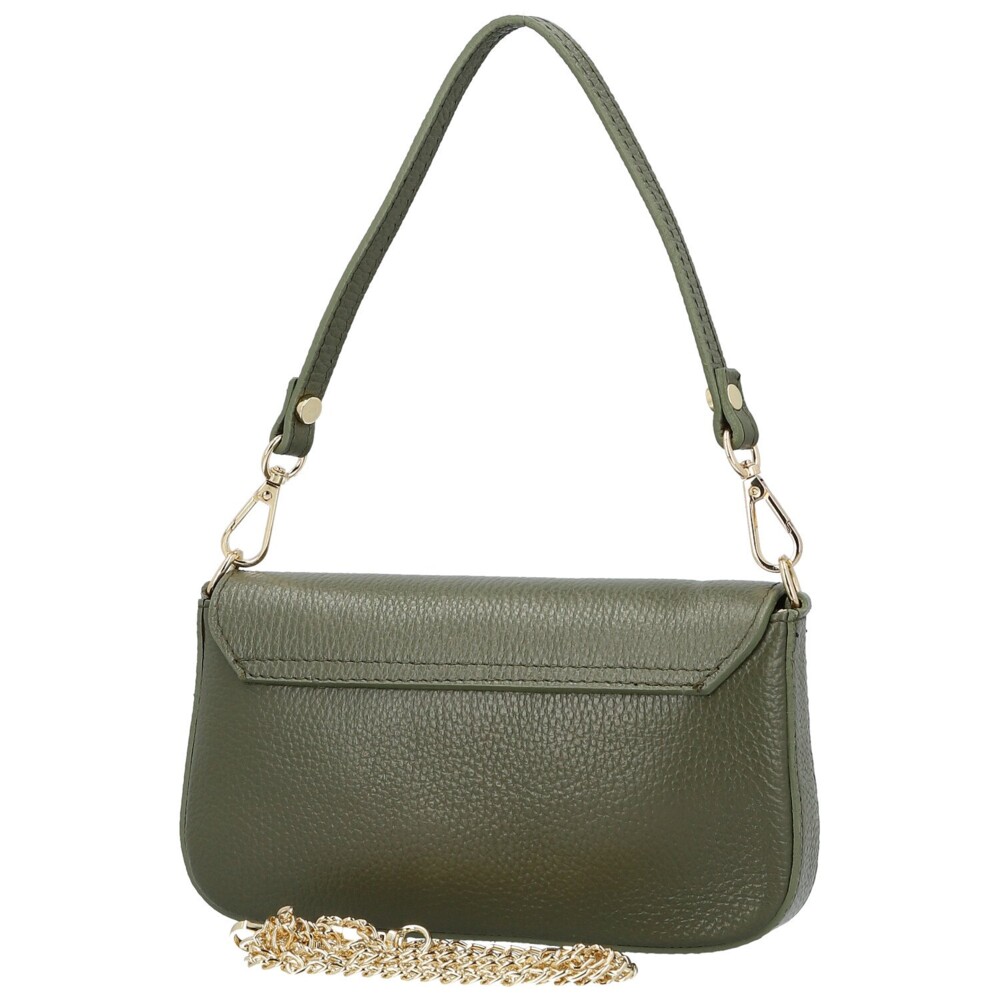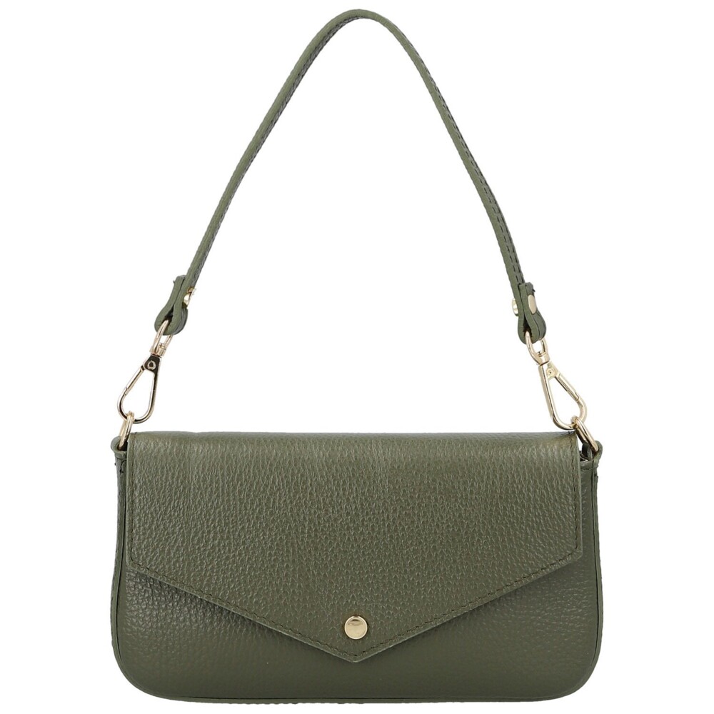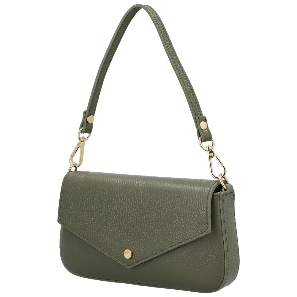 Dámská kožená kabelka na rameno tmavě zelená - Delami Vera Pelle Aksely