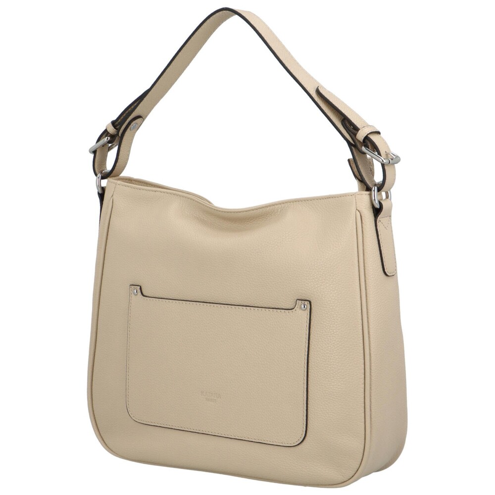Objednejte ještě dnes a vyzkoušejte, vrátit jej můžete až za 30 dnů! Luxusní kožená kabelka pro ženy od značky Katana. Středně velká béžová kabelka, kterou můžete nosit do města, do práce i do společnosti. Jde o velmi módní a kvalitní kožený kousek přes rameno, ať máte připnuté ke kabelce jen ucho nebo i popruh. Přední stranu kabelky zkrášluje volná kapsa, kdy potřebujete mít po ruce třeba telefon nebo kapesníčky. Hlavní kapsa se otevírá zipem, uvnitř je látková přepážka ve formě kapsy na zip. Prostor a rozdělení kabelky, které Vám umožní mít ve věcech přehled Vám tedy chybět nebude. Stejně tak Vám nebudou chybět ani malé kapsičky na další drobnosti a cennosti, například volná kapsa nebo obě kapsičky se zipy z obou stran zadní části kabelky.