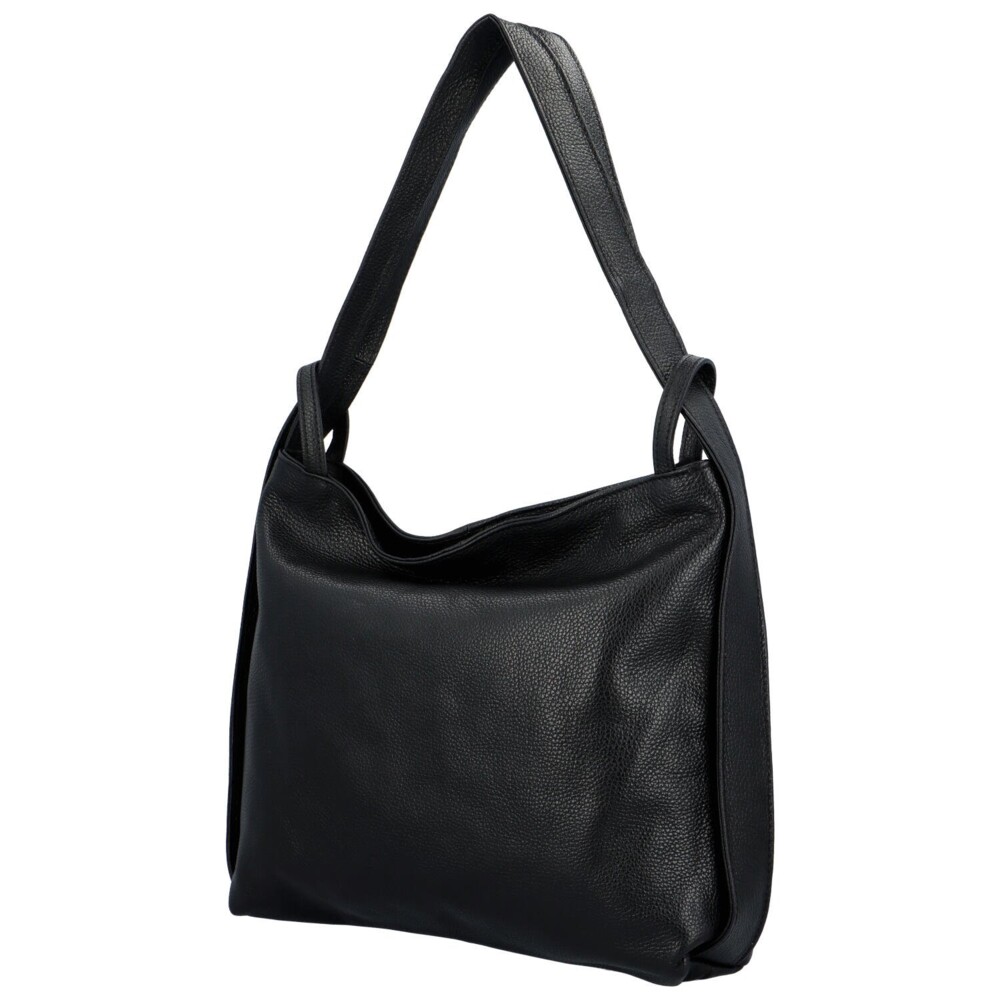 Už znáte kožené produkty značky ItalY? Skvělé kvalitní zboží, které máte nyní na dosah ruky. Objednejte ještě dnes a vyzkoušejte, vrátit ji můžete až za 30 dnů! Středně velká elegantní kabelka přes rameno je jednou z módních krásek, které Vám můžeme nabídnout. Má černou barvu, je měkká a její vzor je vrásčitý. Uši kabelky jsou spojeny s kabelkou, jakoby do popruhů, nosit ji můžete i jako batoh. Hlavní prostor kabelky se otevírá zipem. Telefon a drobnosti si uložíte do dvou volných kapsiček nebo kapsičky se zipem. I na zadní straně kabelky je kapsa se zipem.
