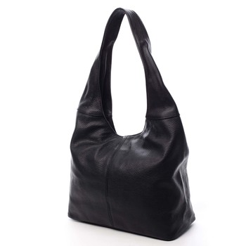 Černá, velká, měkká, kožená kabelka od značky ItalY. Elegantní klasický kousek k ležérnímu dámskému outfitu. Z obou stran je kabelka stejná. Ucho kabelky se směrem ke kabelce rozšiřuje, celkově je kabelka jemně prošitá, oválnější, s pevnějším rovným dnem. Hlavní kapsa se uzavírá zipem, vnitřní prostor dělí látková přepážka ve formě kapsy na zip. Další kapsičku na drobnosti najdete na vnitřní zadní straně. Novinka. Objednejte ještě dnes a vyzkoušejte, vrátit ji můžete až za 30 dnů! Luxus může být i jednoduchý!