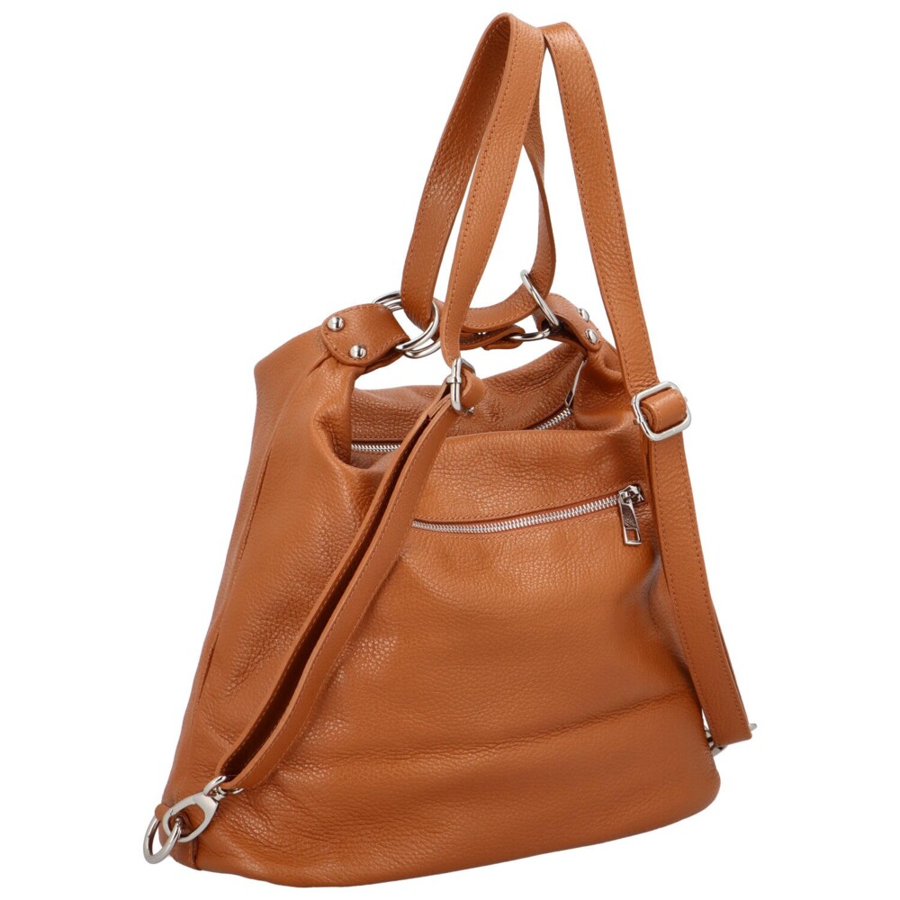 Stylová kožená kabelka Giana vás překvapí nejen svým osobitým vzhledem, ale i svojí multifunkčností. Hlavní úložný prostor je vybaven menšími přihrádkami v podšívce a bezpečně jej uzavřete zipem. Z vnějšku kabelky se nachází menší kapsa, také uzavíratelná zipem. Zip je sladěn do stříbrné barvy spolu se zbylým kováním. Zvláštností a velkou výhodou kabelky je nastavitelný popruh. Ten můžete využít k nošení přes rameno nebo do kříže. Dá se však nastavit i do pozice dvou popruhů a kabelku tak jednoduše v mžiku změníte do pohodlného batůžku! Objednejte ještě dnes a vyzkoušejte, vrátit ji můžete do 30ti dnů!
