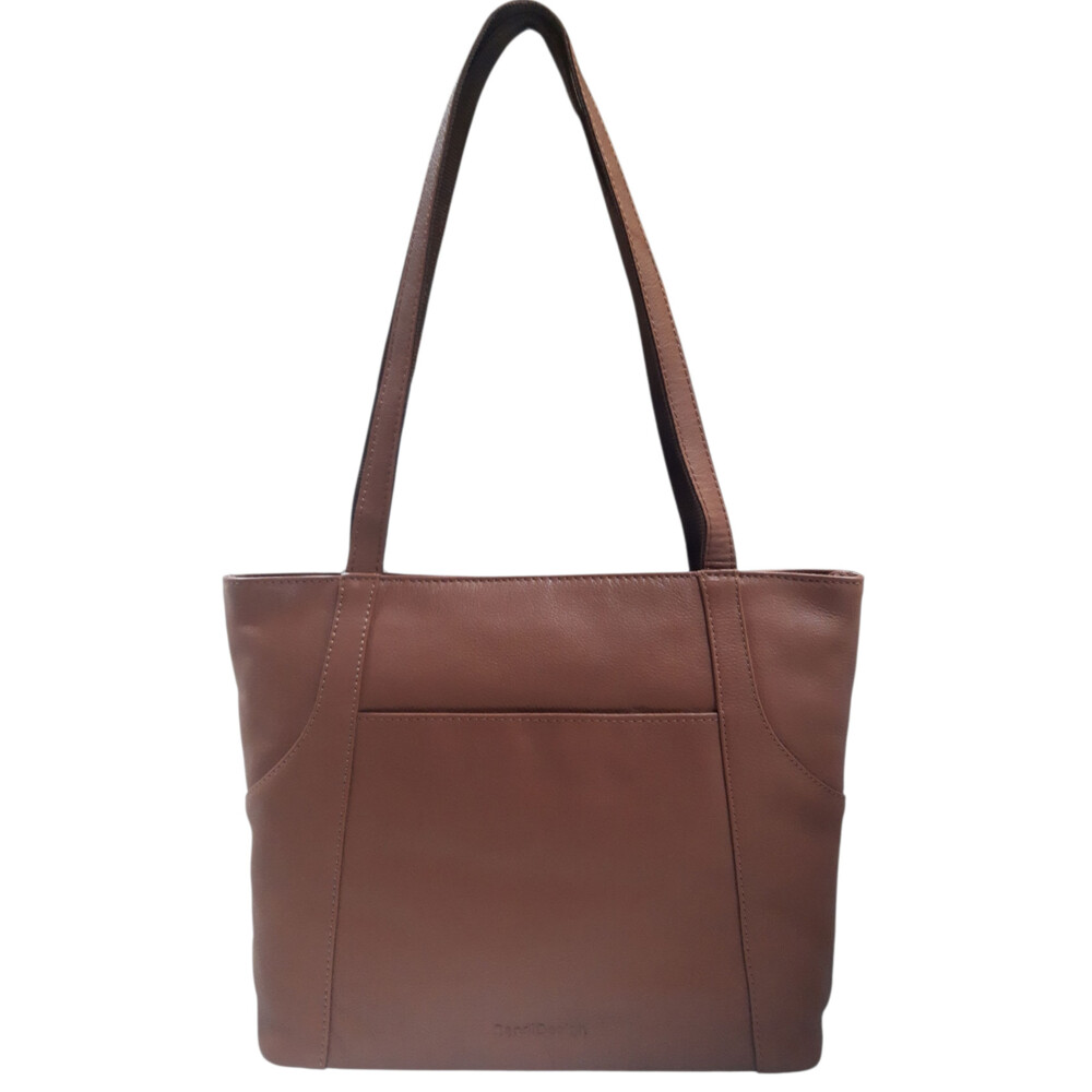 Nové kožené kabelky pro ženy od značky SendiDesign. Objednejte ještě dnes a vyzkoušejte, vrátit ji můžete až za 30 dnů! Koňaková středně velká dámská kabelka z hovězí kůže. Módní kabelka přes rameno s hlavní kapsou na zip. Jde kabelku s dlouhýma ušima, díky kterým se velmi pohodlně nosí přes rameno. Model je designově jednoduchý. Přední stranu doplňuje volná kapsička. Pojme veškeré osobní věci jako jsou doklady, peněženka, diář, brýle, šátek, telefon a kosmetika. Kabelka, která vám bude dobře sloužit každý den. :)