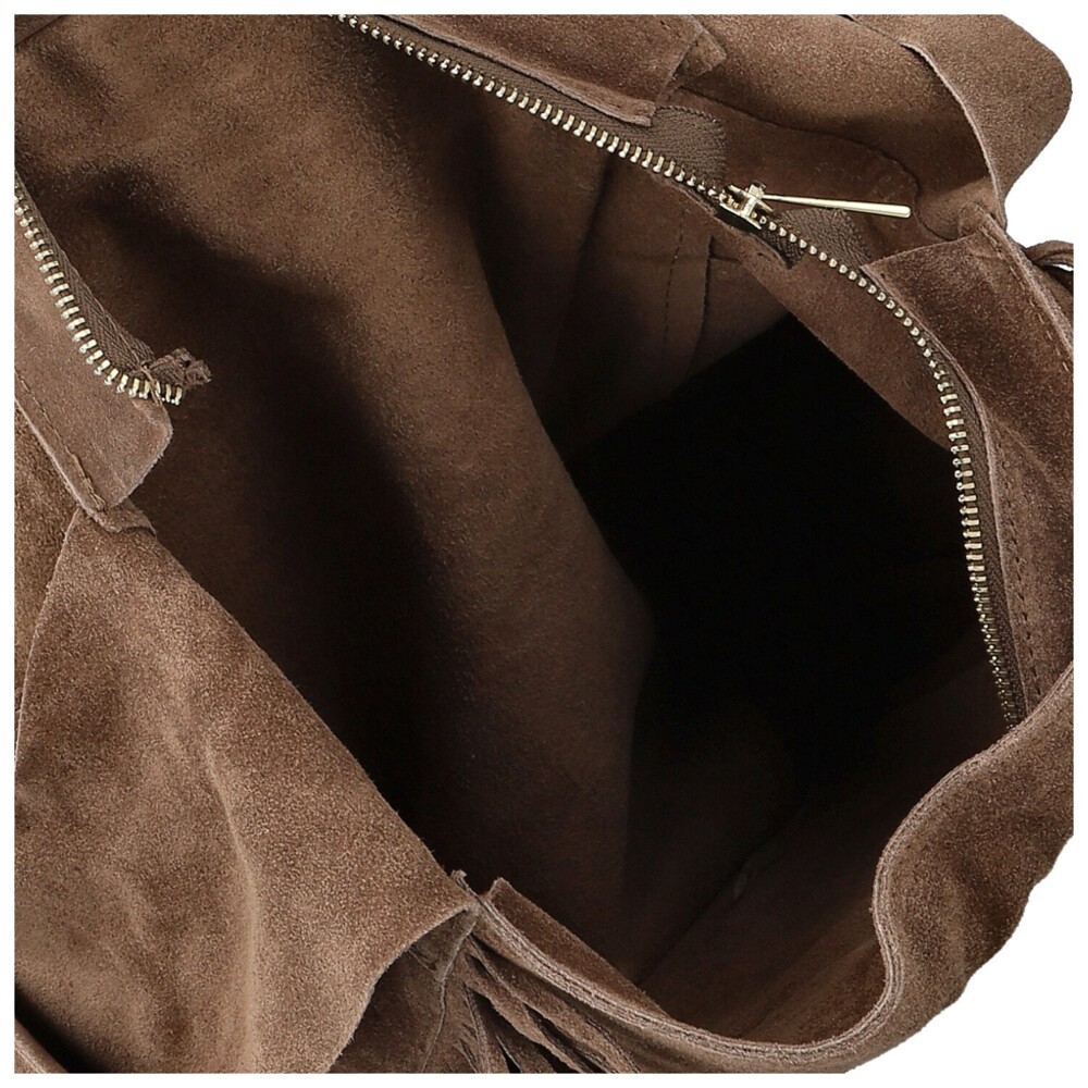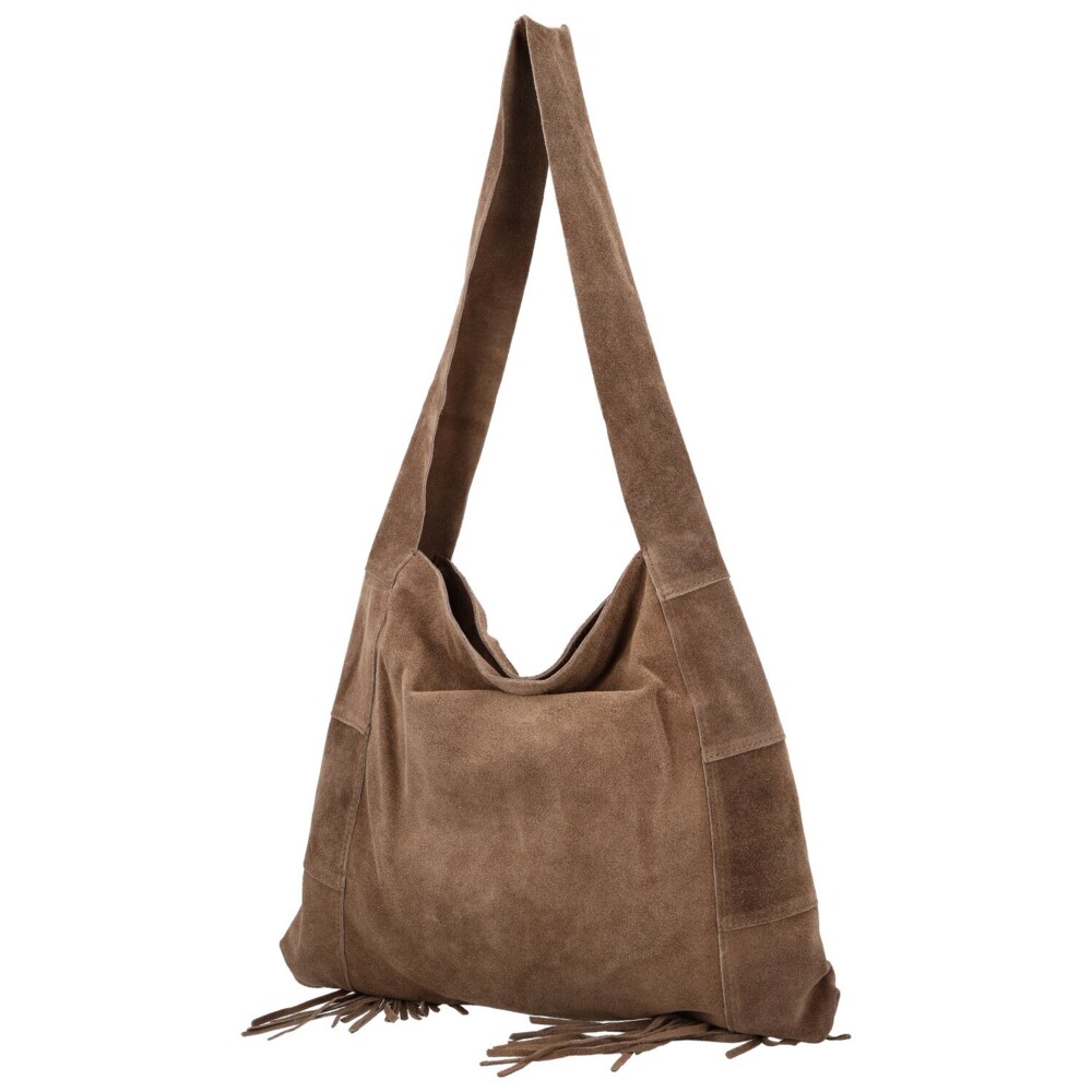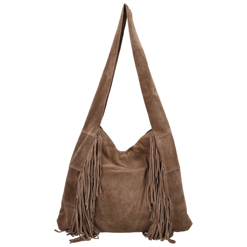 Uvolněný styl a prémiová kvalita se setkávají v této měkké kožené kabelce. Broušená kůže jí dodává jemnou texturu, zatímco dlouhé a širší ucho umožňuje pohodlné nošení na rameni. Přední stranu zdobí hravé kožené střapce, které přidávají kousek ležérní elegance. Hlavní prostorná kapsa na zip nabízí dostatek místa pro všechny každodenní nezbytnosti, a zlaté kování završuje celkový luxusní vzhled. Perfektní volba pro volný čas, nákupy i městské procházky. Objednejte ještě dnes a vyzkoušejte, vrátit ji můžete až za 30 dnů!