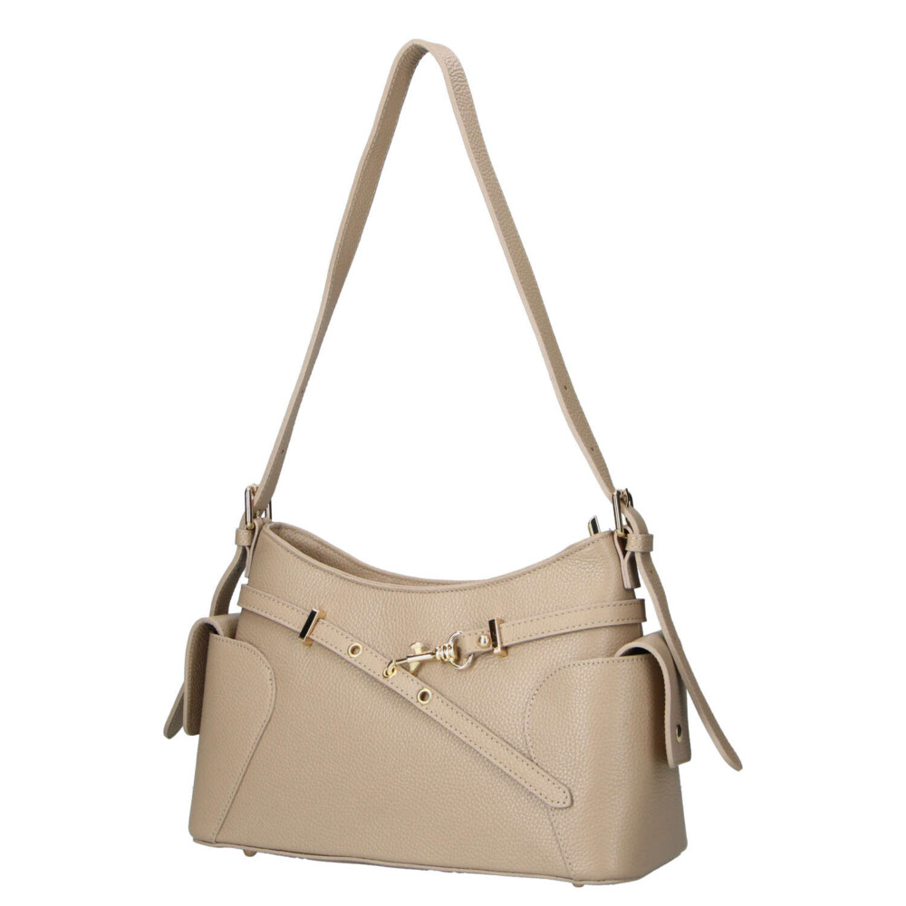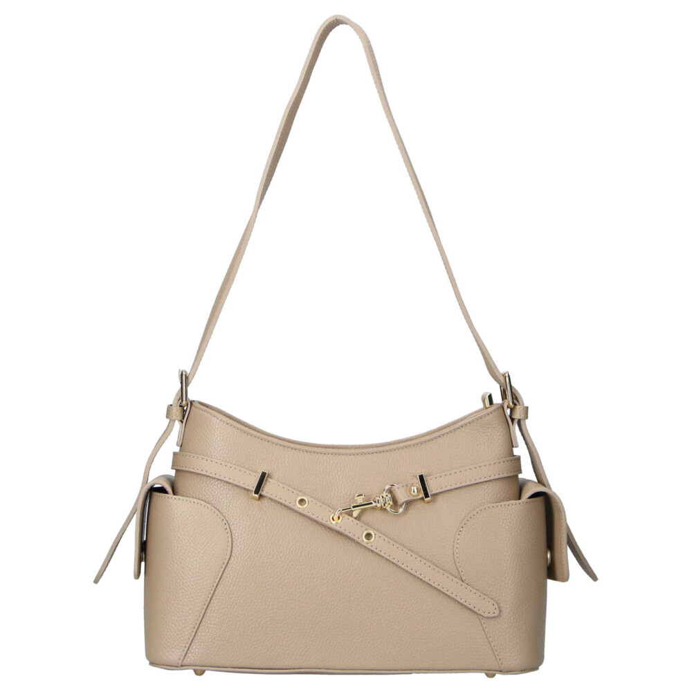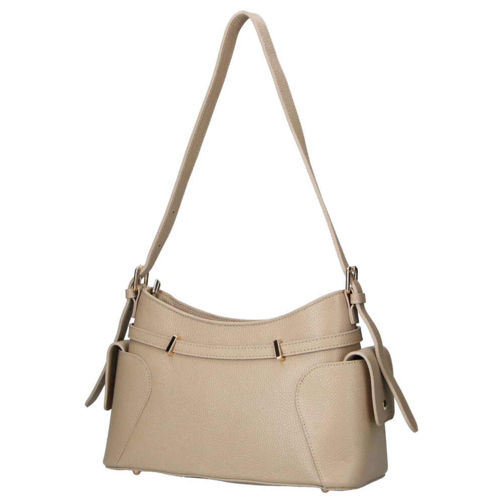 Dámská kožená kabelka přes rameno tmavě béžová - Delami Vera Pelle Slusch