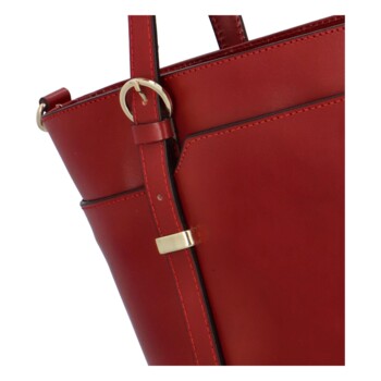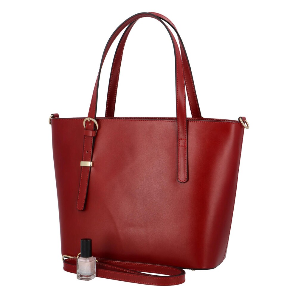 Luxusní kabelka z hovězí usně. Elegantní dámský doplněk od značky ItalY, který lze nosit přes rameno. Hodit se Vám bude zejména ve městě nebo při pracovních schůzkám či v autě. Krásný módní kousek, kterému neodoláte! Novinka. Objednejte ještě dnes a vyzkoušejte, vrátit ji můžete až za 30 dnů! Prostorná středně velká kabelka je pevná, má tmavě červenou barvu a pevné dno se cvoky, které jí zajistí stabilitu i jistou ochranu. Hlavní kapsa se zapíná zipem. Uvnitř najdete čtyři praktické kapsičky na drobnosti. Další kapsa je na přední straně kabelky.